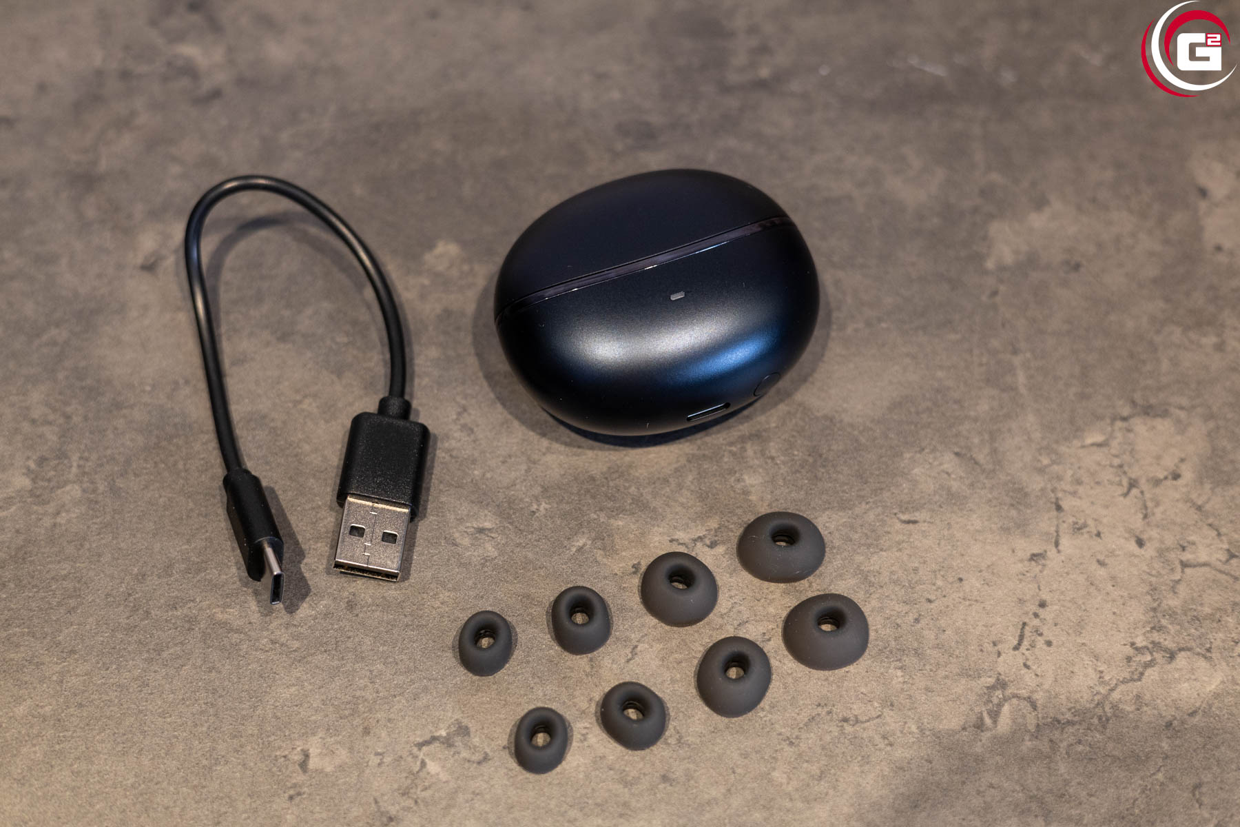 Bei In-Ear-Kopfhörern gibt es insbesondere zwei Faktoren, die für die Ergonomie entscheidend sind: das Gewicht und der Sitz im Ohr. Ein geringes Gewicht sorgt dafür, dass man die Kopfhörer kaum wahrnimmt, und erleichtert den stabilen Halt im Ohr. Darüber hinaus sollten sie möglichst wenig Druckgefühl erzeugen, also nicht zu stramm sitzen. Diese Anforderungen erfüllen die QCY MeloBuds N70 sehr gut. Um den Sitz im Ohr an die individuellen Gegebenheiten anzupassen, finden sich im Lieferumfang Silikon-Ohrstöpsel in insgesamt fünf verschiedenen Größen. Ein guter Sitz im Ohr ist zum einen wichtig, damit einem die Kopfhörer nicht aus dem Ohr fallen, und zum anderen ist ein dichter Abschluss für eine zuverlässige Funktion der ANC-Technologie notwendig. Hier hatten wir Glück, denn die vorinstallierten Ohrstöpsel wiesen bei uns bereits eine ideale Passform auf, sie lassen sich aber auch leicht tauschen. Man zieht nur die installierten Stöpsel ab und steckt die gewünschten auf. Im Lieferumfang finden sich aber noch sowohl größere als auch kleinere, vorinstalliert ist die mittlere Variante. Hier sollte sich für jedes Ohr etwas Passendes finden.