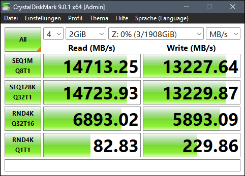 | Herstellerangabe | 14.700 MB/s | 14.000 MB/s |