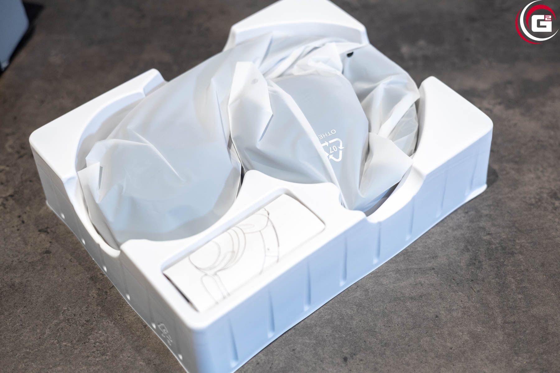 Im Inneren befinden sich die Over-Ear-Kopfhörer, von einem Folienbeutel geschützt, in einem geformten Plastikinlet. Darüber hinaus finden sich noch ein USB-A auf USB-C-Ladekabel und die Bedienungsanleitung im Lieferumfang.