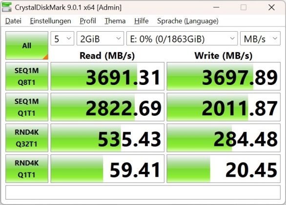 | Herstellerangabe | 3.800 MB/s | 3.700 MB/s |