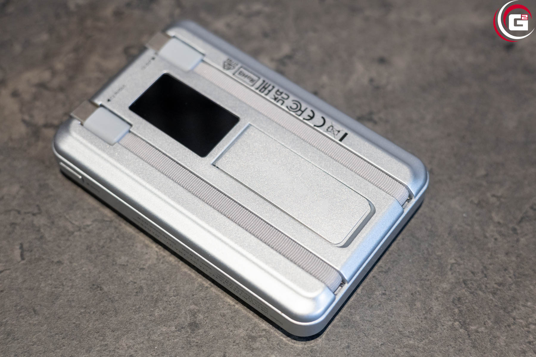 Auf der Unterseite befindet sich ein integriertes TFT-Digitaldisplay. Dieses zeigt den aktuellen Akkustand in Prozent sowie Ladeparameter wie Stromstärke und Statusinformationen an. Die drahtlose Ladefläche ist magnetisch ausgeführt und unterstützt eine ausgerichtete Positionierung kompatibler Geräte.