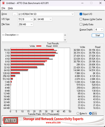 Ein spezielles Benchmark-Tool für SSDs. Dieses erfasst neben den Datenraten auch die Zugriffszeit auf die gesamte SSD. - Atto Disk Benchmark: