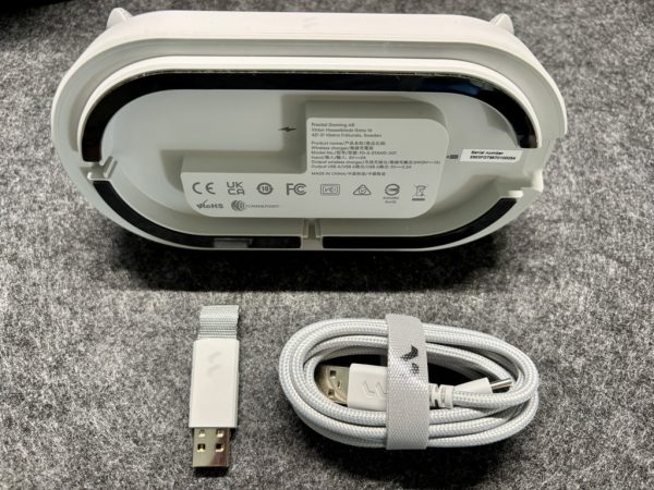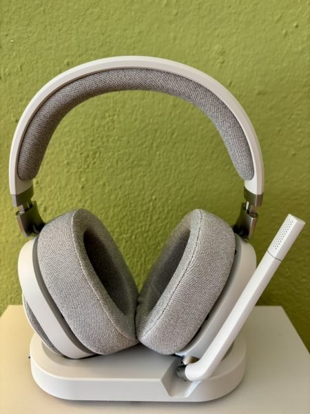 Das mitgelieferte magnetische Induktiv-Dock ist ein echtes Highlight. Das Headset schaltet sich beim Absetzen automatisch aus und beginnt zu laden. Zum Abheben sollte man es leicht nach vorn kippen, sonst hebt man das Dock mit an.
