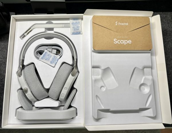Die Materialqualität entspricht dem Premium-Anspruch des 200-Euro-Preissegments. Die Ohrmuscheln sind mit Memory Foam gepolstert und mit einem weichen, atmungsaktiven Stoff überzogen. Der Kopfbügel verfügt über einen Metallkern für zusätzliche Stabilität und ist ebenfalls großzügig gepolstert. Mit einem Gewicht von 338 Gramm (inklusive Mikrofon) bzw. 314 Gramm ohne Mikrofon liegt das Scape im Mittelfeld der kabellosen Gaming-Headsets. Die kompakten Abmessungen von 160 × 195 × 84 mm machen es zu einem relativ kompakten Vertreter seiner Klasse.