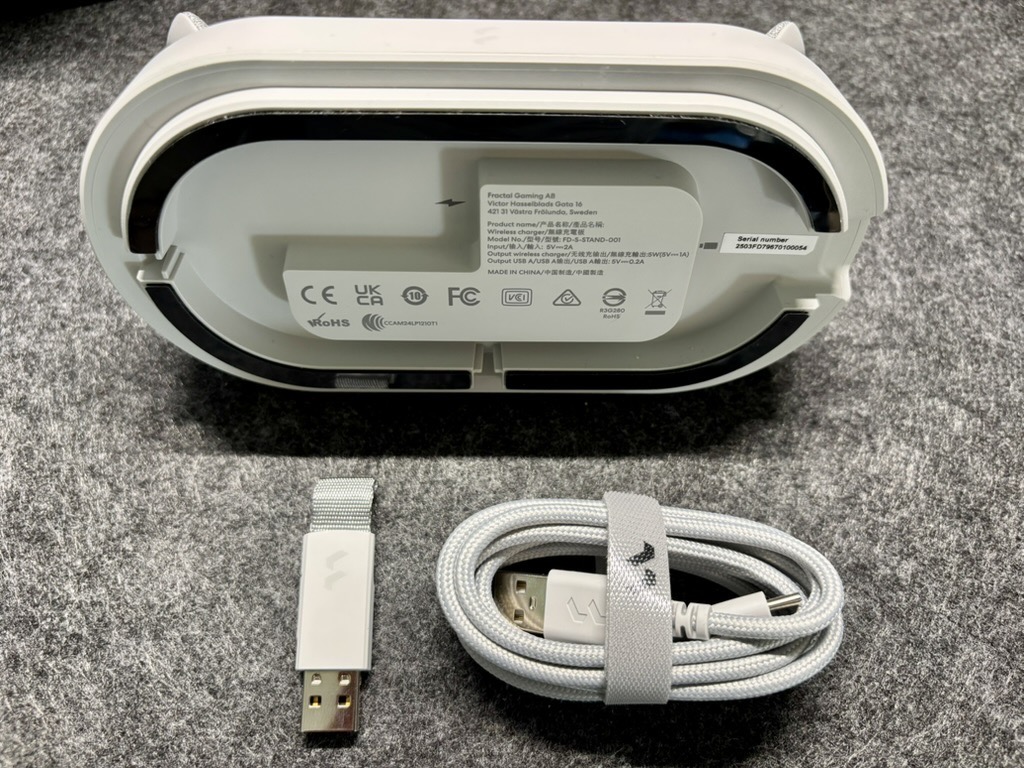 Der USB-Dongle wird elegant in der magnetischen Ladestation verstaut und bietet eine latenzarme Verbindung für Gaming.