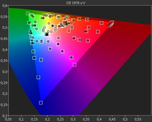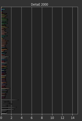Nicht nur die Helligkeit des Displays überzeugt, sondern auch die Farben. Wir haben die Farbwiedergabe mit dem Tool ColorMatch getestet. Dabei wurden die dargestellten Farben des Monitors mit den Farben der Software abgeglichen und Abweichungen (deltaE-Wert) gemessen. Eine Abweichung von über 3 deltaE ist für das menschliche Auge sichtbar. Aus diesem Grund sollte der Durchschnittswert unter 3 deltaE liegen.