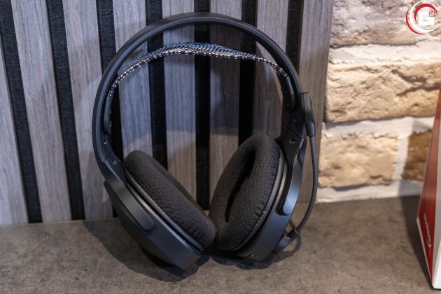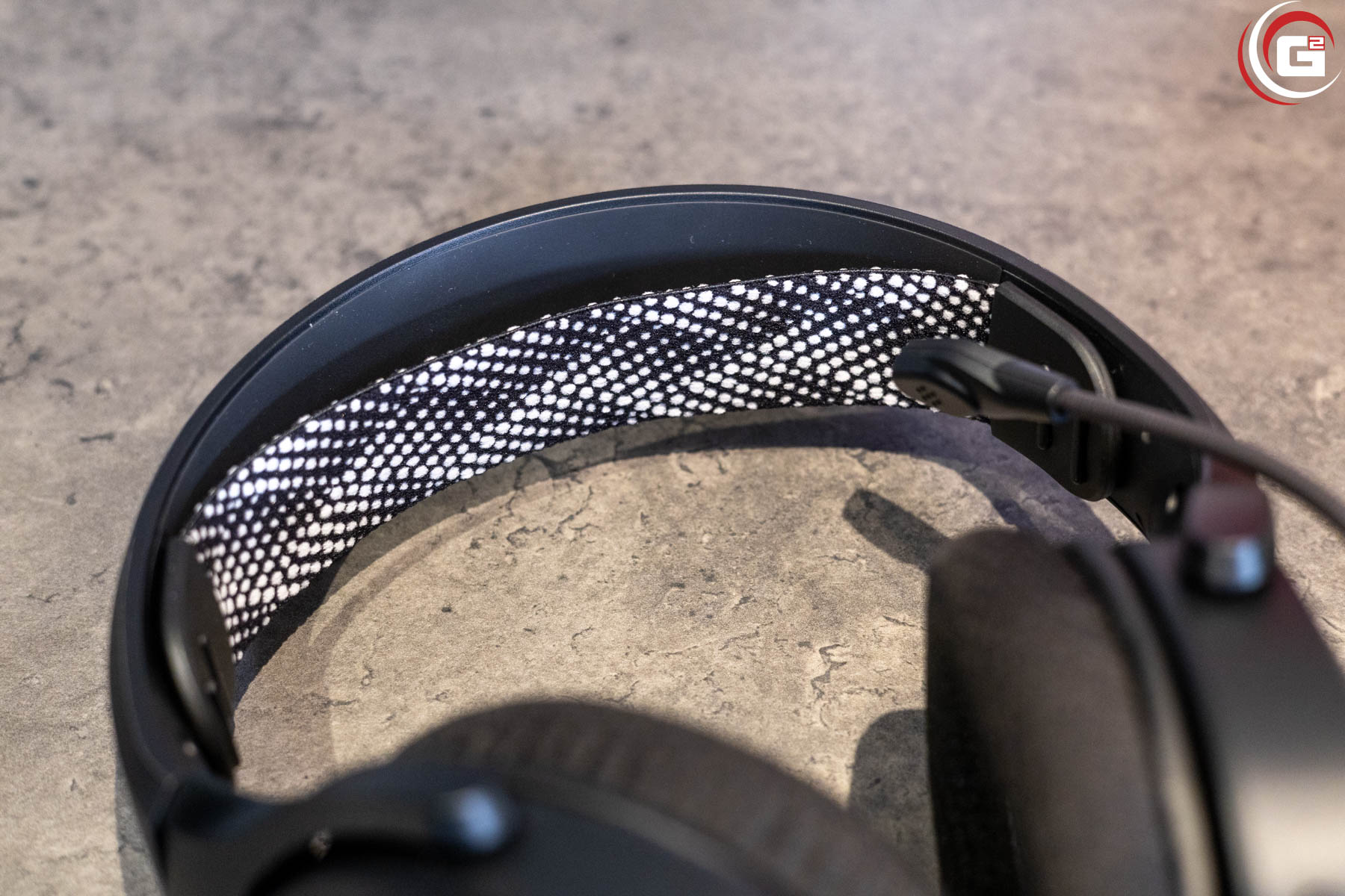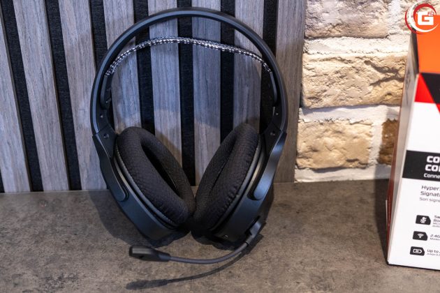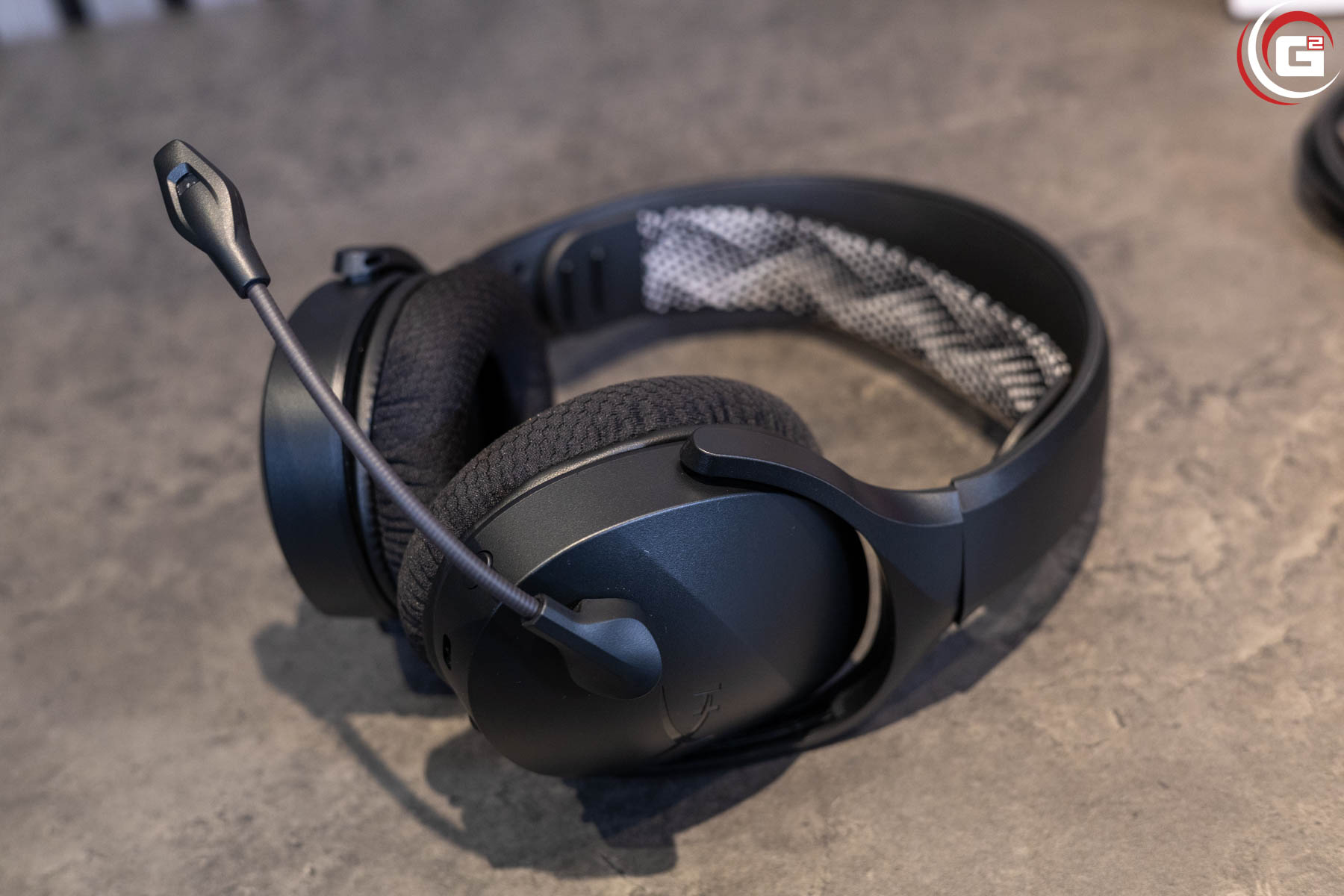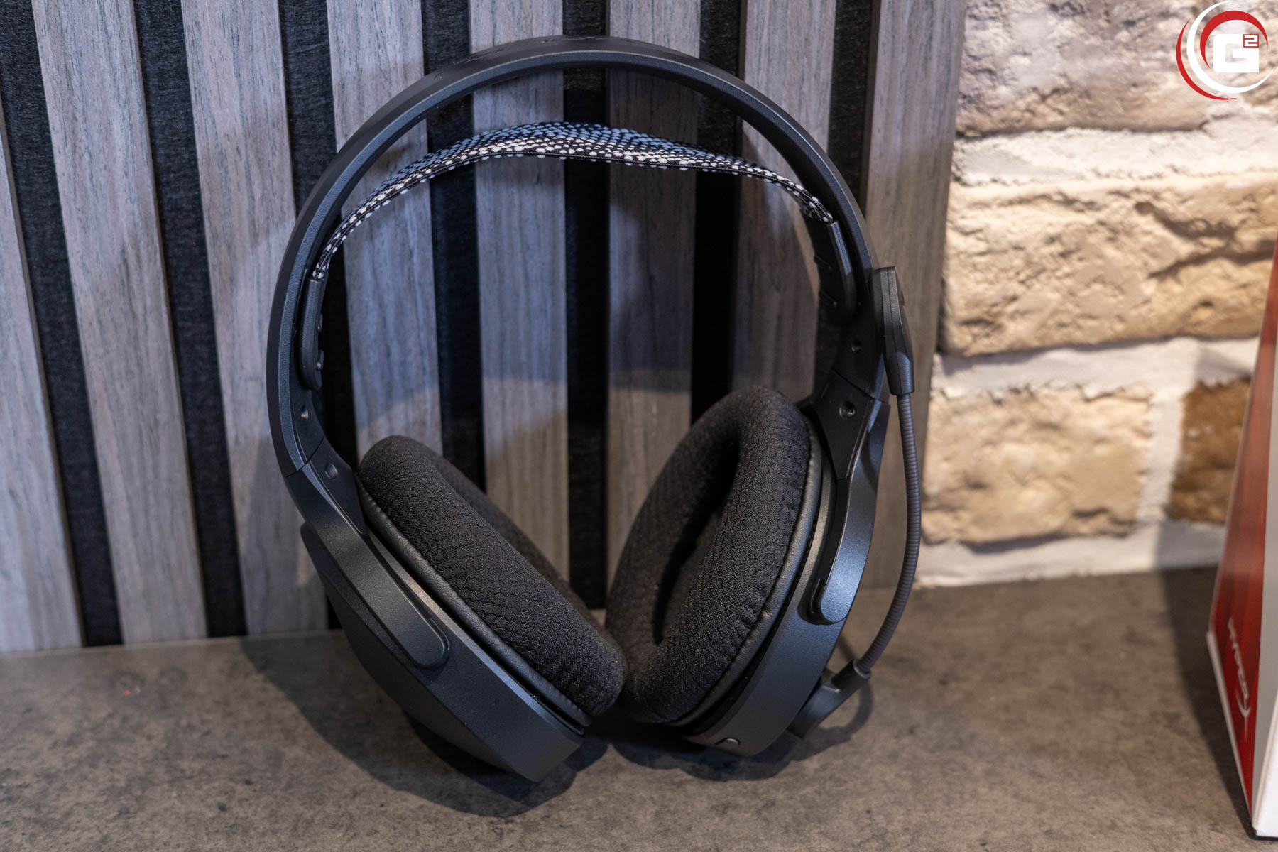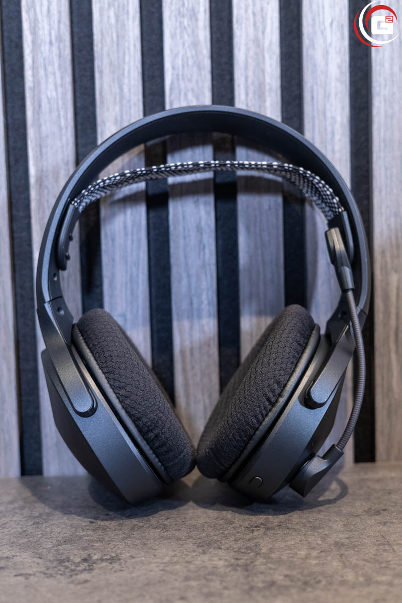 Das HyperX Cloud Jet Dual Wireless ist insgesamt recht leicht und sitzt nur leicht gespannt auf dem Kopf. Das flexible Kopfband passt sich sehr gut an und sitzt auch in der Grundausrichtung gut auf großen Köpfen. Man könnte das Kopfband noch etwas weiter stellen, allerdings liegt dann der Kopfbügel direkt auf. Die Ohrmuscheln verteilen den Druck gleichmäßig, gegen die Umgebungsakustik schließen sie nur minimal ab. Der Stoff sitzt angenehm auf der Haut, allerdings könnte die Polsterung etwas weicher sein.