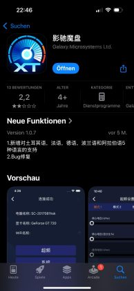 Auch in der aktuellen Version wird auf unserem Testsystem der Installer der Xtreme Tuner Plus Software wieder vom Windows Defender fälschlicherweise als gefährlich eingestuft. Hier muss man einmal die Installation bestätigen und darf sich nicht von der Warnung irritieren lassen. Bei der Installation der App gilt es auch etwas zu beachten. Sucht man im iOS-App-Store nach der Xtreme Tuner App wird diese einem weiterhin in chinesischer Schrift angezeigt. Startet man die App wird sie aber korrekt englischsprachig angezeigt. Die Verbindung zwischen PC und App lässt sich leicht herstellen. Hierzu kann man in der PC-Software einen QR-Code öffnen, den man dann nur in der App einlesen muss, schon ist man verbunden. Die App speichert die Verbindungsdaten des PCs (IP-Adresse) und kann so immer wieder neu verbunden werden. Es ist dabei nur zu beachten, dass man sich im gleichen Netzwerk befinden muss.