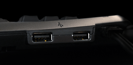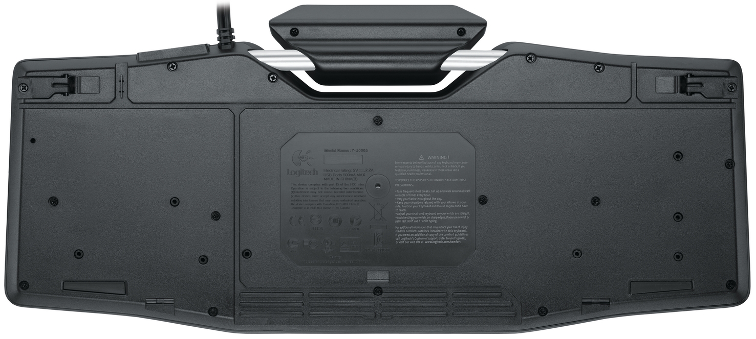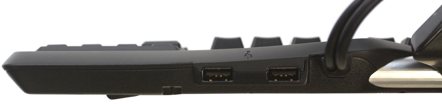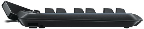 Um weitere Kabel auf dem Schreibtisch zu verstecken befindet sich an der Unterseite eine Führung für Maus-, Headset- und andere Kabel. Im Gegensatz zu den G510(s) Tastaturen fehlen Sound- und Mikrofoneingänge komplett.