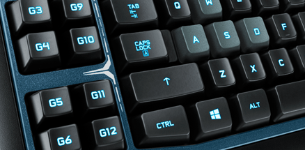 Mit 199 € bietet die G19s leider keine mechanische Tasten. Gerade in der Preisklasse hätten mechanische Tasten das Produkt noch besser machen können. Die gewöhnlichen Rubberdome Tasten der G19s haben einen hohen Tastenwiderstand. So müssen die Tasten immer komplett durchgedrückt werden, um eine Reaktion auf dem Monitor zu erzeugen. Damit bieten die Tasten keinen Unterschied zur alten G19 und den G510(s) Tastaturen. Was aber ein Unterschied ist, ist dass die G19s Anti-Ghosting bis zu 6 Tasten beherrscht. Das Anti-Ghosting ermöglicht es, gleichzeitig bis zu 6 Tasten zu betätigen, ohne dass eine Eingabe nicht erkannt wird.