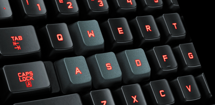 Mit der MR-Taste (Makro-Recording) können Tastenfolgen aufgenommen und auf einer Makro-Taste gespeichert werden. Damit man während dem Spielen nicht ausversehen auf den Desktop springt, ist auch ein Gaming-Modus-Schiebeschalter vorhanden, der die Windows- und Fenster-Tasten sperrt.