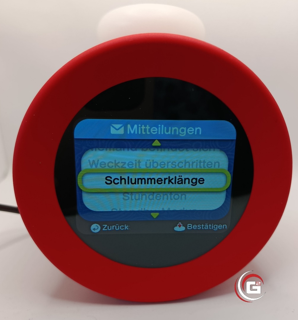 Mit dem Drehknopf könnt Ihr die Sprache, die Zeitzone und das aktuelle Datum sowie die Zeit einstellen. Ein Druck auf den Einstellknopf bestätigt Eure Auswahl. Anschließend startet Alarmo die Einrichtung der Bewegungssensoren. Der Wecker reagiert auf Winkbewegungen, aber auch auf Eure Drehungen im Bett. Wichtig ist hierbei die Ausrichtung des Weckers. Dieser sollte auf einer ebenen Fläche stehen, nicht höher als 20 cm über Eurem Bett stehen und dem Bett zugewandt sein.