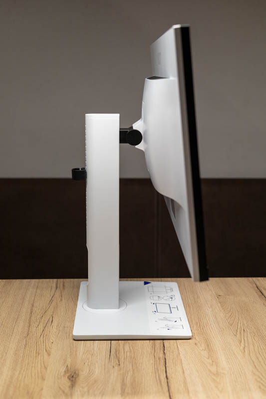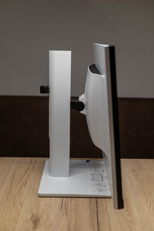 Eine Bewegungsachse bleibt da noch übrig, man kann den Monitor auch ein gutes Stück in der Höhe verstellen. Ebenfalls wichtig, um den Monitor korrekt an die Sitzposition anpassen zu können.