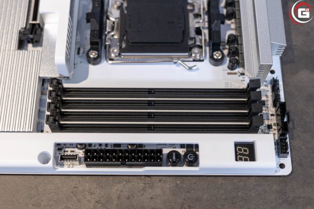 Beim RAM setzt das Mainboard auf DDR5-RAM, für den vier Slots zur Verfügung stehen. Natürlich wird hier auch ein Dual-Channel-Betrieb unterstützt. Es werden RAM-Taktraten von bis zu 8.200 MT/s unterstützt. Beim Overclocking können mittels XMP und EXPO vorkonfigurierte Profile geladen werden, man kann jedoch auch selber Hand anlegen.
