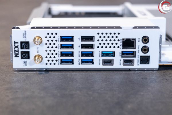 Es sind diverse USB-Schnittstellen mit einer Datenrate von bis zu 20 GBit/s vorhanden. Auch Thunderbolt 4 mit einer Datenrate von bis zu 40 GBit/s ist mit zwei Anschlüssen am IO-Shield vertreten. USB-2.0-Anschlüsse finden sich am IO-Shield nicht wieder, dafür sind drei USB 3.2 Gen 1, sechs USB 3.2 Gen 2 und ein USB 3.2 Gen 2×2-Anschlüsse verfügbar. Intern finden sich weitere Header zur Schnittstellenerweiterung: 2x USB 2.0, 2x USB 3.2 Gen 1 und 1x USB 3.2 Gen 2×2.