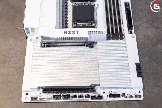 Das Mainboard verfügt über zwei PCIe-Schnittstellen in voller Baulänge. Davon entspricht die obere dem PCIe-Gen-5-Standard und ist an die CPU angebunden. Die untere PCIe x16-Schnittstelle ist gemäß dem PCIe Gen-3×16-Standards an den Chipsatz angebunden und besitzt auch einen x2-Modus.