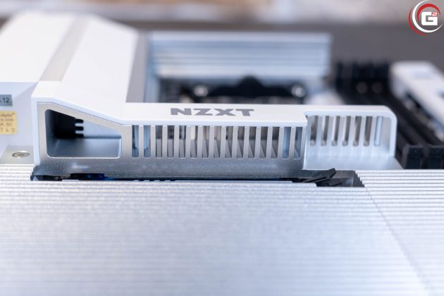 Auch zur Ansteuerung von Lüftern und RGB-Produkten verfügt das Mainboard über einige Schnittstellen. So finden sich zwei 4-polige Anschlüsse im Bereich der CPU für den CPU-Lüfter und eine AiO-Pumpe. Für weitere Gehäuselüfter gibt es insgesamt drei 4-polige Anschlüsse. Dabei wird automatisch erkannt, ob der angeschlossene Lüfter über 4-Pin-PWM oder 3-Pin mit DC-Regelung betrieben wird. Jeder dieser Anschlüsse kann maximal mit 2 A (24 W) belastet werden. Auch zwei NZXT 8-Pin-PWM-Anschlüsse sind vorhanden, sodass man die neuen Singleframe-Lüfter direkt anschließen kann.