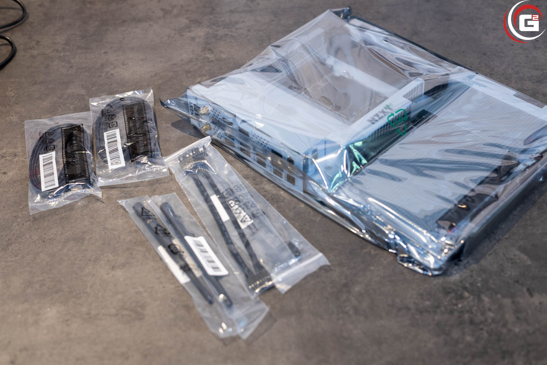 Der Lieferumfang fällt im Vergleich zu anderen Mainboards überschaubar aus. Dieser besteht aus dem Mainboard an sich, den WLAN-Antennen zum Aufschrauben, Schrauben für die m.2-Schnittstellen, vier SATA-Kabeln (2x 90° und 2x 180°), einem Splitter für das 8-polige-Lüfterkabel von NZXT und der Bedienungsanleitung. Das Layout der Bedienungsanleitung folgt dem Stil von NZXT, denn hier finden wir einen gefalteten Papierbogen im A2-Format, für ein Mainboard ebenfalls ungewöhnlich. Die Anleitung ist mehrsprachig aufgebaut und alle wichtigen Informationen sind vorhanden.