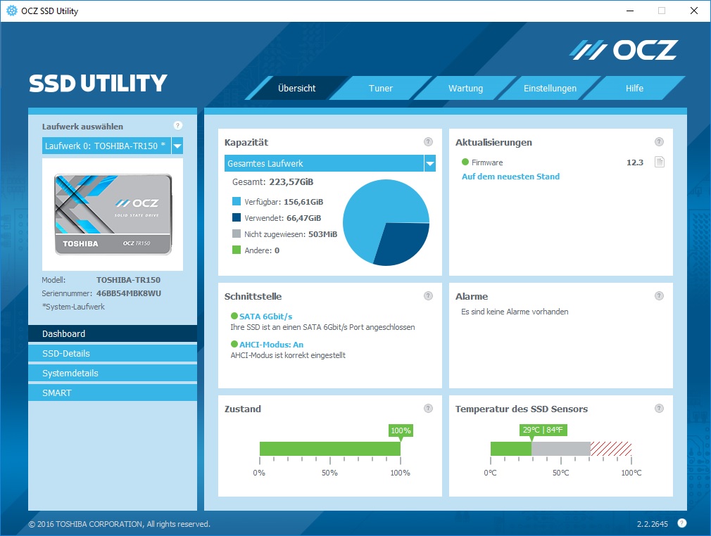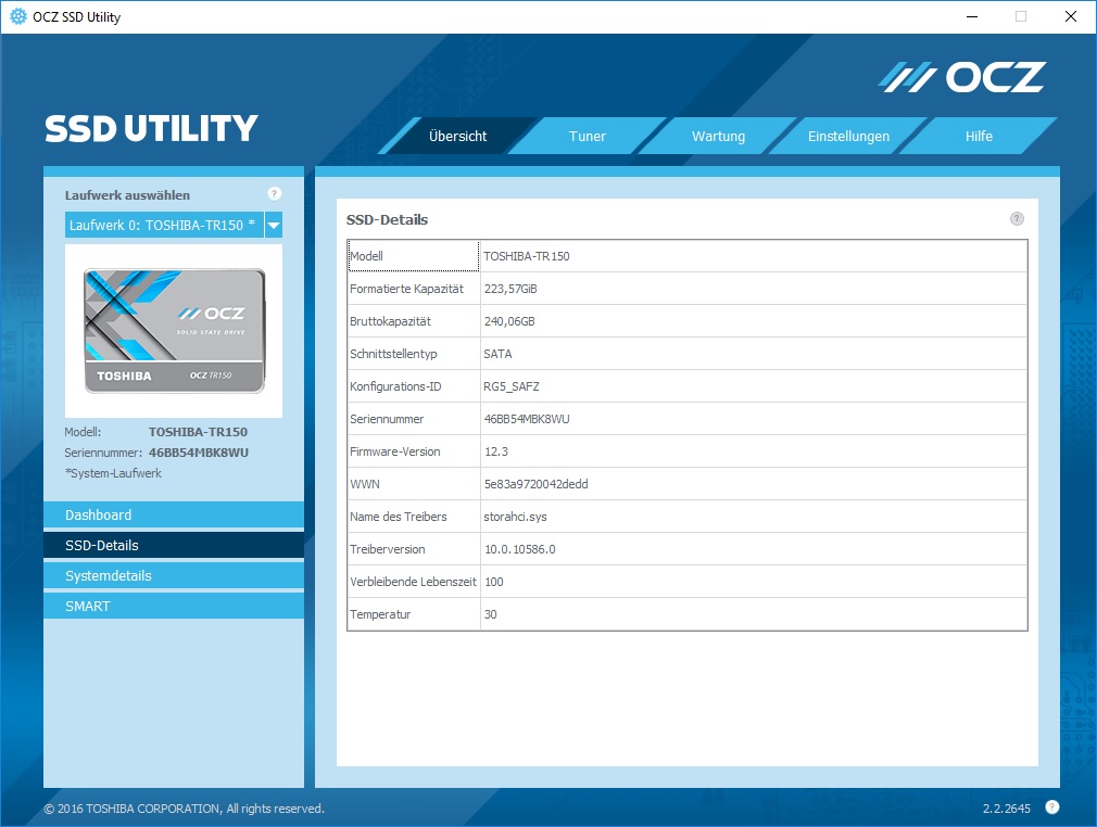 Leider wird bei der SSD weder auf der Verpackung noch in der beiliegenden Anleitung nicht direkt auf die Software hingewiesen. Natürlich funktioniert die SSD auch ohne spezielle Software, dennoch bietet das OCZ SSD Utility-Tool einige interessante Features.