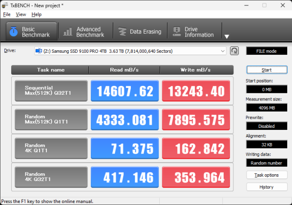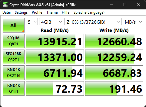 | Samsung 9100 Pro 4TB | Seq. Lesen | Seq. Schreiben |