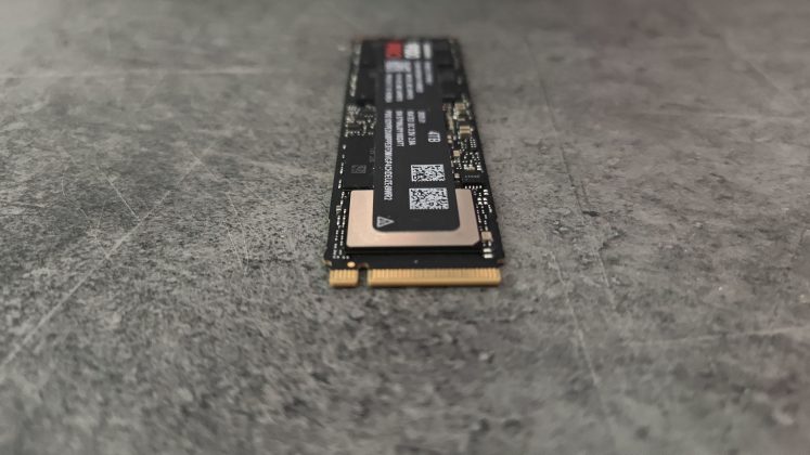 Die SSD basiert auf einem schwarzen PCB, welches einseitig mit Chips bestückt ist. Wie bei SSDs üblich befindet sich über den Chips ein großer Aufkleber. Hinzu kommt hier auch noch einer auf der Rückseite. Über das Material ist nichts bekannt, in der Regel sind diese Aufkleber aber so ausgelegt, das sie eine gute Wärmeübertragung bieten und so auch die Abwärme des Controllers etwas flächiger verteilen. Entfernen sollte man den Aufkleber jedenfalls nicht, da sonst die Garantie verloren geht.