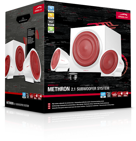 Mit dem Methron 2.1 Subwoofer System bietet SpeedLink ein 2.1-System für kleines Geld an. Wer auf ein 5.1-System verzichten kann und wissen will ob das neue Produkt von SpeedLink einschlagen kann, sollte sich diesen Test nicht entgehen lassen. Aber bevor es mit dem Test los geht, erhaltet Ihr die harten Fakten:
