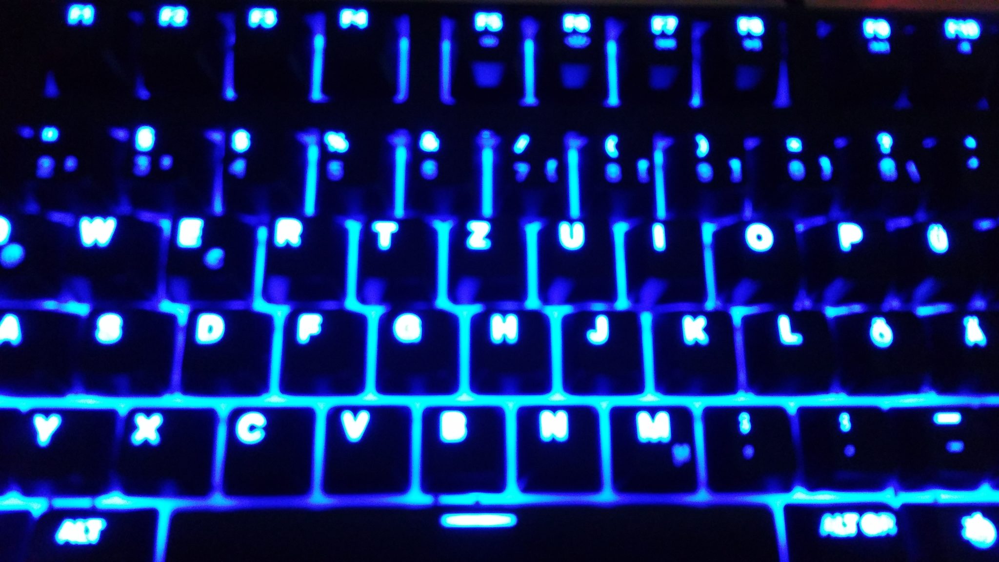 Neben den regulären F-Tasten lässt sich wirklich fast alles belegen bis auf eine einzelne Taste. Hierbei handelt es sich um die SteelSeries Taste, rechts neben ALT-GR. Diese fungiert ganz im geheimen sozusagen und ersetzt die reguläre FN-Taste. Haltet ihr diese gedrückt, können Multimediafunktionen oberhalb bei den F-Tasten genutzt werden. Somit lässt sich die Helligkeit der Tasten schnell und einfach umstellen, aber auch Lautstärke und Co. können modifiziert werden.