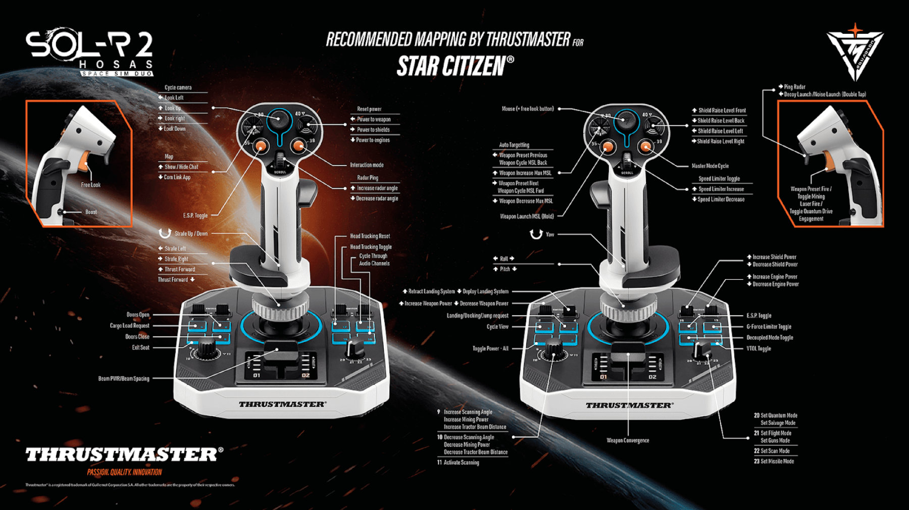 Im Arena Commander zeigen die Thrustmaster SoL-R 2 was sie können: Die Dual-Stick-Steuerung ermöglicht schnelle, präzise Manöver – besonders in hektischen Dogfights. Wird der Kampf heftig und die Hände auch einmal schwitzig, sorgen die Sticks dank der ergonomischen Handauflagen, Daumenstütze sowie Griffflächen für einen guten Grip.