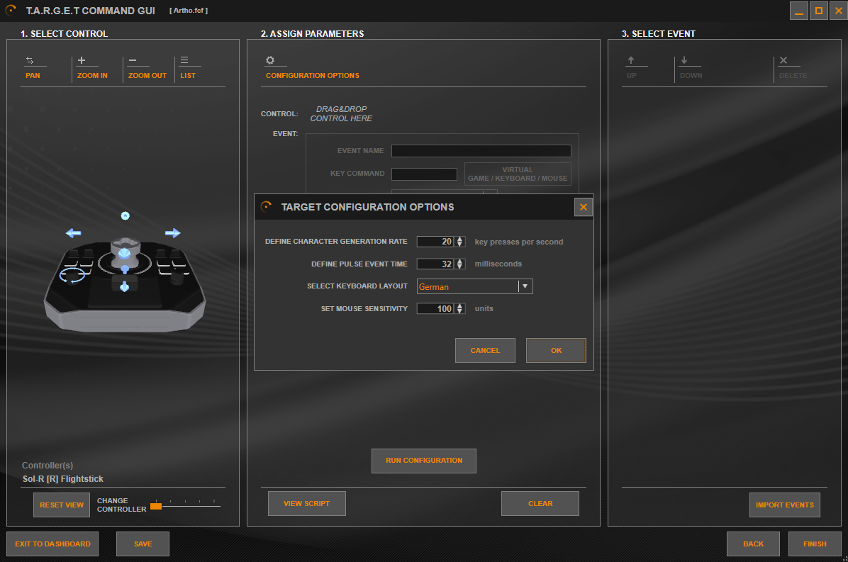 Wer wirklich das Maximum aus seinem Thrustmaster-Setup rausholen will, kommt an der T.A.R.G.E.T-Software nicht vorbei. Zugegeben: Der Name TARGET (Thrustmaster Advanced pRogramming Graphical EdiTor) klingt erstmal wie der Titel eines Hollywood Blockbuster aus vergangenen Zeiten, aber dahinter steckt aber ein verdammt praktisches Tool.
