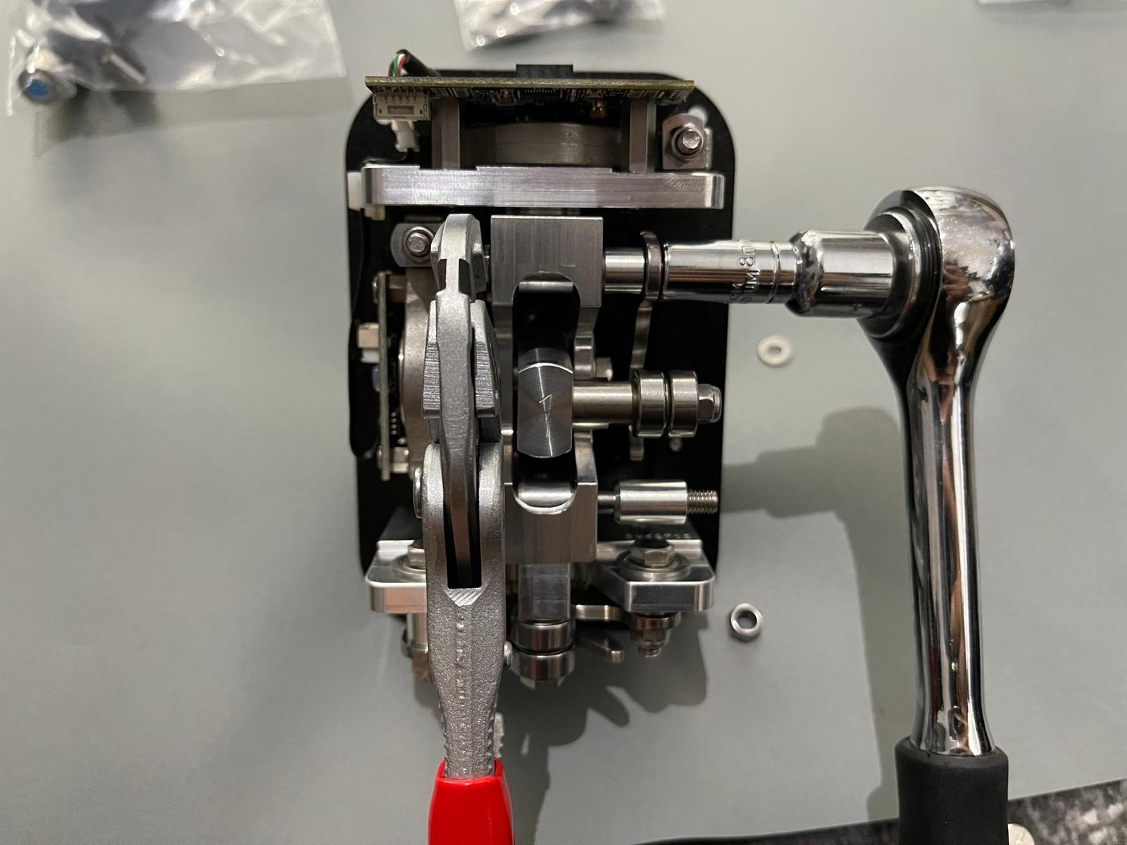 Wenn man das Innere der Base befreit hat, kommt die eigentliche Mechanik zum Vorschein, welche zur Feinabstimmung modifiziert werden kann.