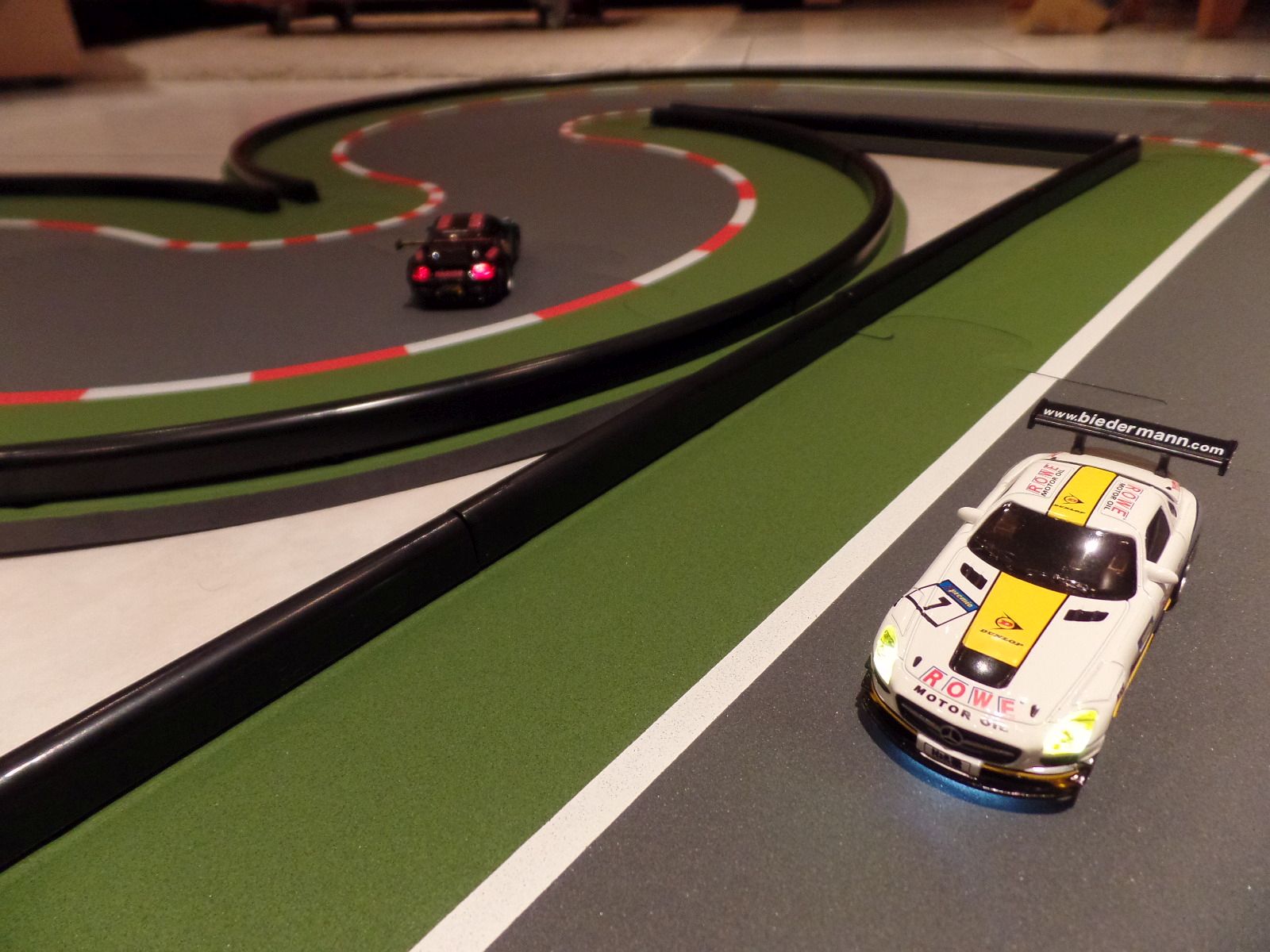 Was viele nicht wussten: Es gibt richtig starke Alternativen. Wobei man mit Alternative dabei sogar noch untertreibt, je nach Blickwinkel. Denn mich persönlich störte bei Carrerabahnen schon immer der Fakt, dass die Autos auf festgelegten Schienen über den Plastik-Asphalt flitzen. Vielleicht lege ich mich jetzt mit Fans solcher Rail-Systeme an, aber mir war das schon immer zu dumpf. Denn letztlich reduzierte sich so das Rennspektakel auf Gasgeben und Bremsen in den Kurven.
