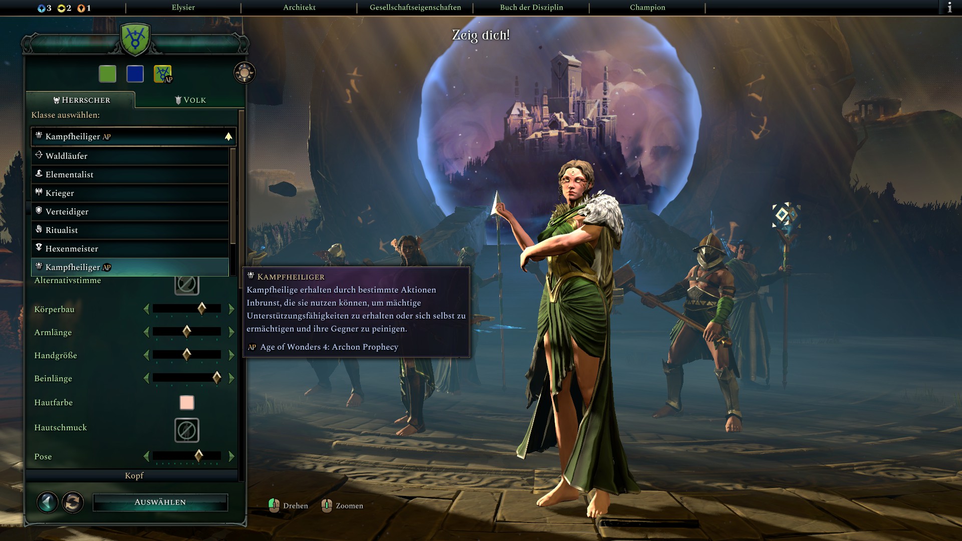 Begleitet werden die neuen Schauplätze von zwei zusätzlichen Völkern, mit denen ihr euer Reich individuell gestalten könnt. Die Elysier – erhabene, engelhafte Wesen – verleihen eurer Nation einen Hauch göttlicher Erhabenheit. Ihnen gegenüber stehen die Uralten, gebrechlich wirkende Kreaturen aus den vergessenen Tiefen der Geschichte, die eine düstere Aura mit sich bringen.