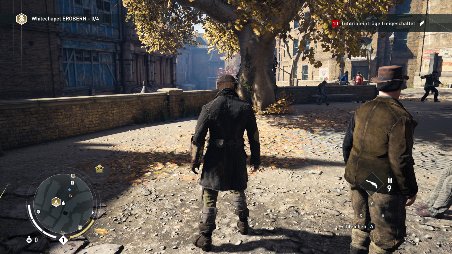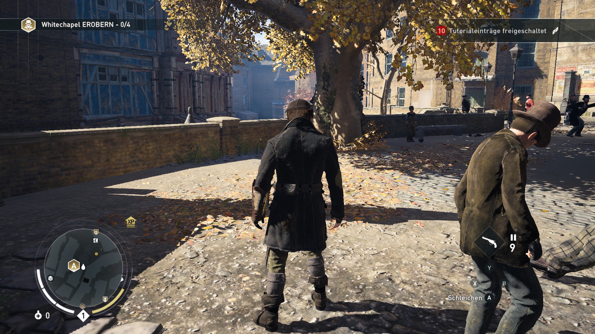 Wie auch in Unity können wir Erfahrungspunkte sammeln und so immer neue Fähigkeiten freischalten. Wir erhalten für Attentate, das Abschließen von Sequenzen oder Zufallsereignisse Erfahrungspunkte. Fähigkeiten, Geld und Erfahrungspunkte landen auf einem gemeinsamen Konto und können entsprechend für Evie oder Jacob verwendet werden. Wie in jedem Assassin’s Creed gibt es auch hier einiges an Nebenaktivitäten und etwas für Jäger und Sammler: Kisten mit Geld oder Rüstungsgegenstände sind überall verteilt, mit denen wir unseren Charaktere wieder anpassen können.