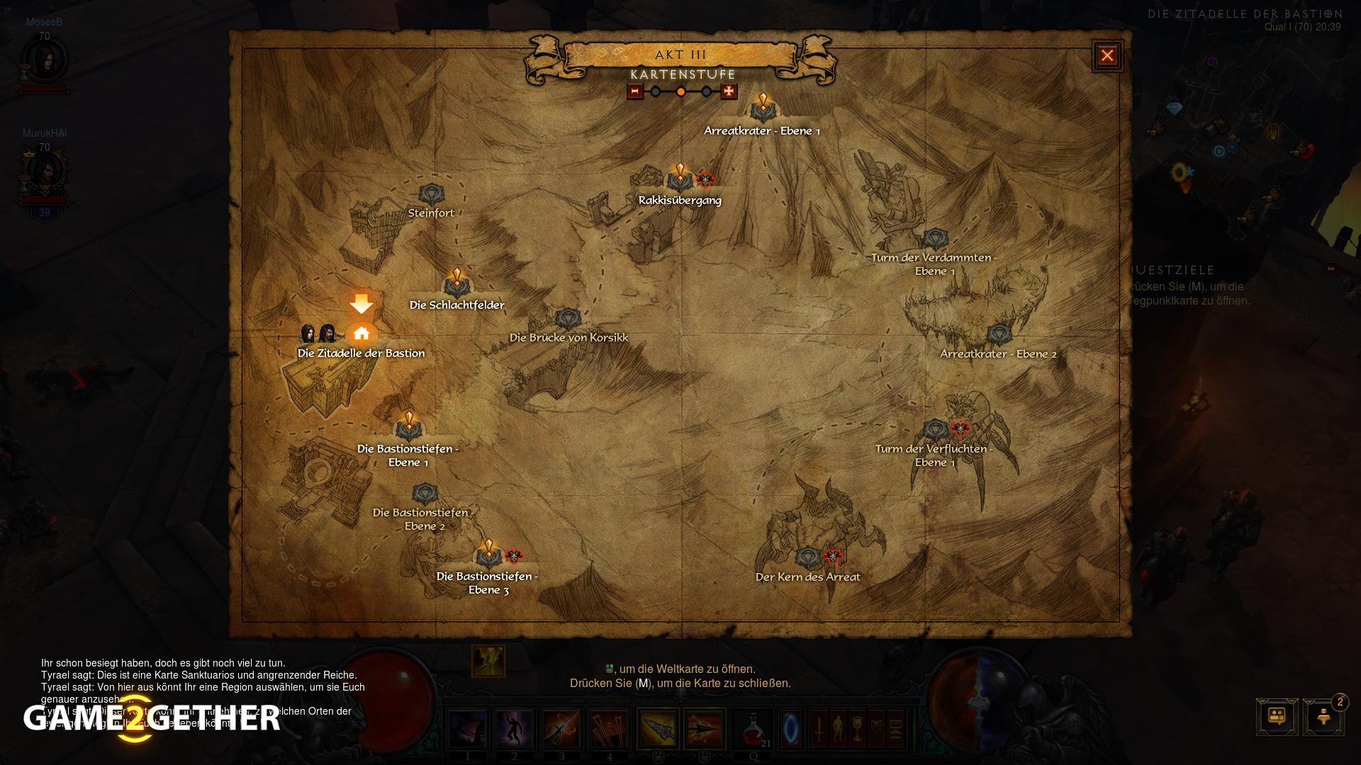 Über eine Weltkarte können wir dann entscheiden, ob wir jetzt zu einem bestimmten Boss springen oder unser Lieblingsdungeon besuchen. Dabei gibt es aber auch Kopfgelder in der Welt. Das sind Mini-Quests, die uns in der offenen Welt ein wenig Anreiz bieten. Diese Kopfgelder beinhalten Aufgaben, wie Boss XY töten oder Event ABC zu absolvieren und erscheinen ganz zufällig in der Welt. Wenn wir alle 5 Kopfgelder pro Akt abschließen bekommen wir etwas ganz Besonderes, das Horadrim Würfelchen. Dieses Item beinhaltet neben Crafingitems auch ab uns an ein Legendäres Item. Alleine dafür lohnt sich der Sprung in den Abenteuermodus, zudem erhalten wir eine neue Währung die Blutsplitter. Mit der wir bei einem bestimmten Händler, zufällige Items kaufen können die von der Qualität sich allerdings stark unterscheiden. Ähnlich dem Glückshändler aus dem Vorgänger.