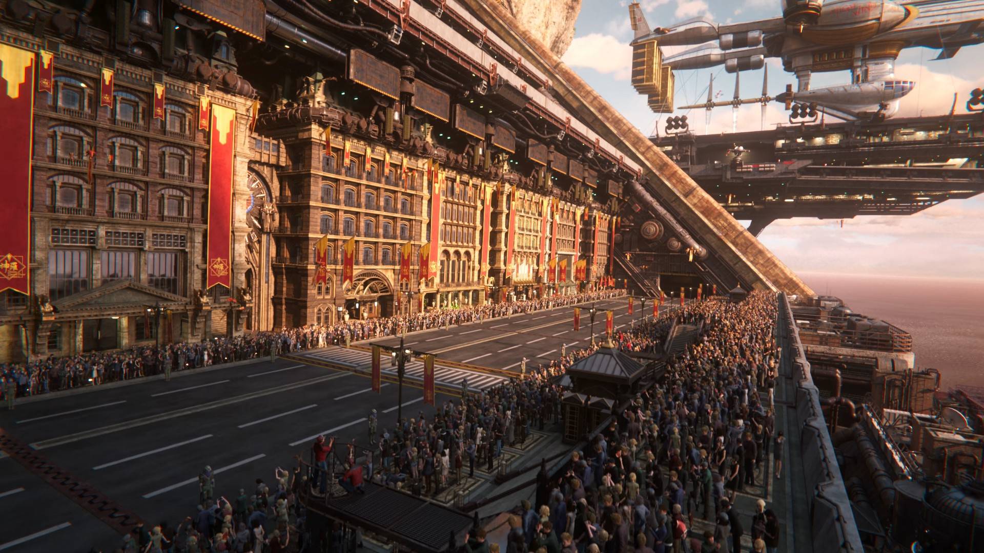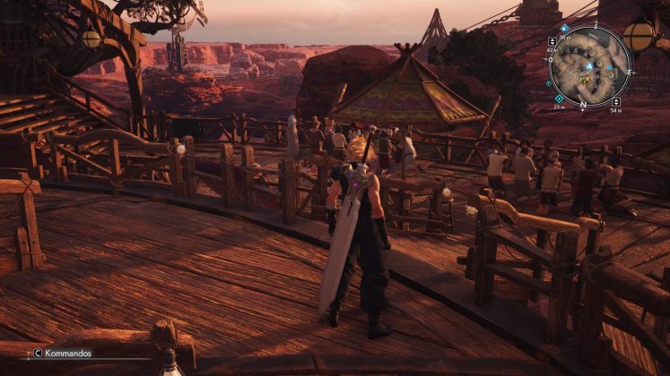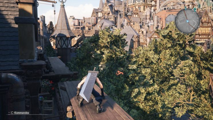 Gleich in dieser ersten neuen Zone kann FF7: Rebirth mit wunderschöner Grafik und großem Detailreichtum überzeugen. Egal wohin man schaut, seien es dunkle Gassen, Gasthäuser, schicke Plätze oder Aussichtstürme, alles strotzt vor kleinen Details, die die Welt lebendig wirken lassen.