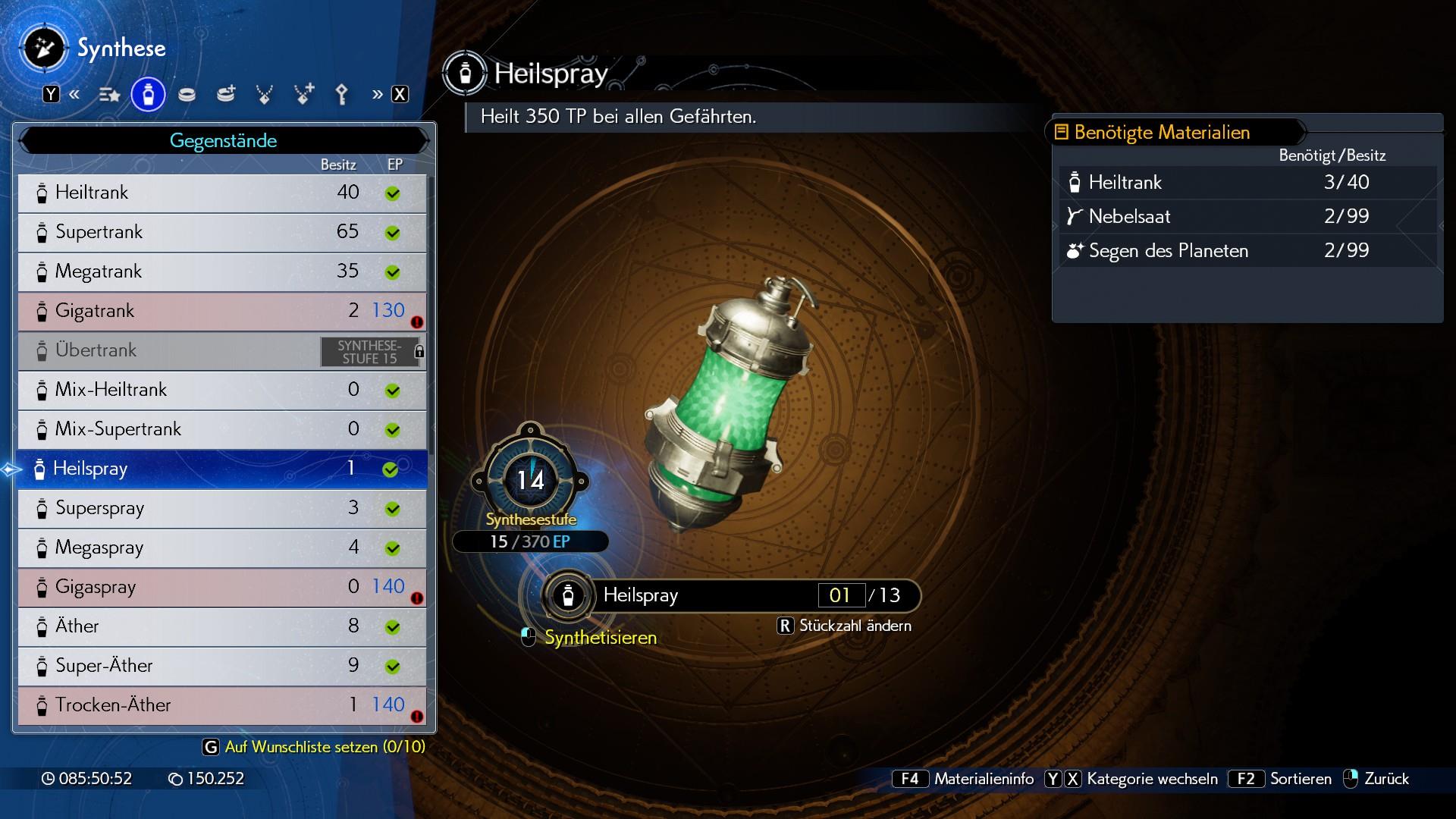 Selbst in längeren Bosskämpfen und auch dann, wenn die Begleiter-KI so eingestellt ist, dass diese eigenständig Aktionen durchführen, kommt es selten vor, dass genug ATP-Aktionen durchgeführt wurden, um Synchrofähigkeiten nutzen zu können. Schade.