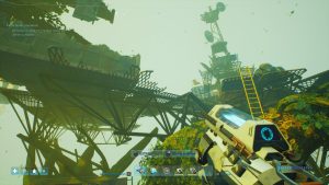 Man selbst läuft dabei nicht quer durch die Welt. Entweder befindet man sich auf dem eigenen Luftschiff oder auf kleinen Inseln, die im Grunde zusammengewürfelte Ruinen aus alter Zeit sind, mit darauf aufbauenden zusammengeschusterten Baracken. Der Rest ist ein Abgrund, dessen Boden durch Stürme und Staub nicht einsehbar ist. Angepasst an die geringe selbstständige Fortbewegungsmöglichkeit des Chars, ist die körperliche Motorik ebenfalls eingeschränkt. Neben crouchen, schnellem gehen und einen kleinen Hopser in die Höhe, ist an sportlicher Leistung nicht viel mehr drin. Spannend wird dies bei der ersten Erkundungstour. Hier sollte das Schiff immer in wortwörtlich greifbarer Nähe platziert sein.