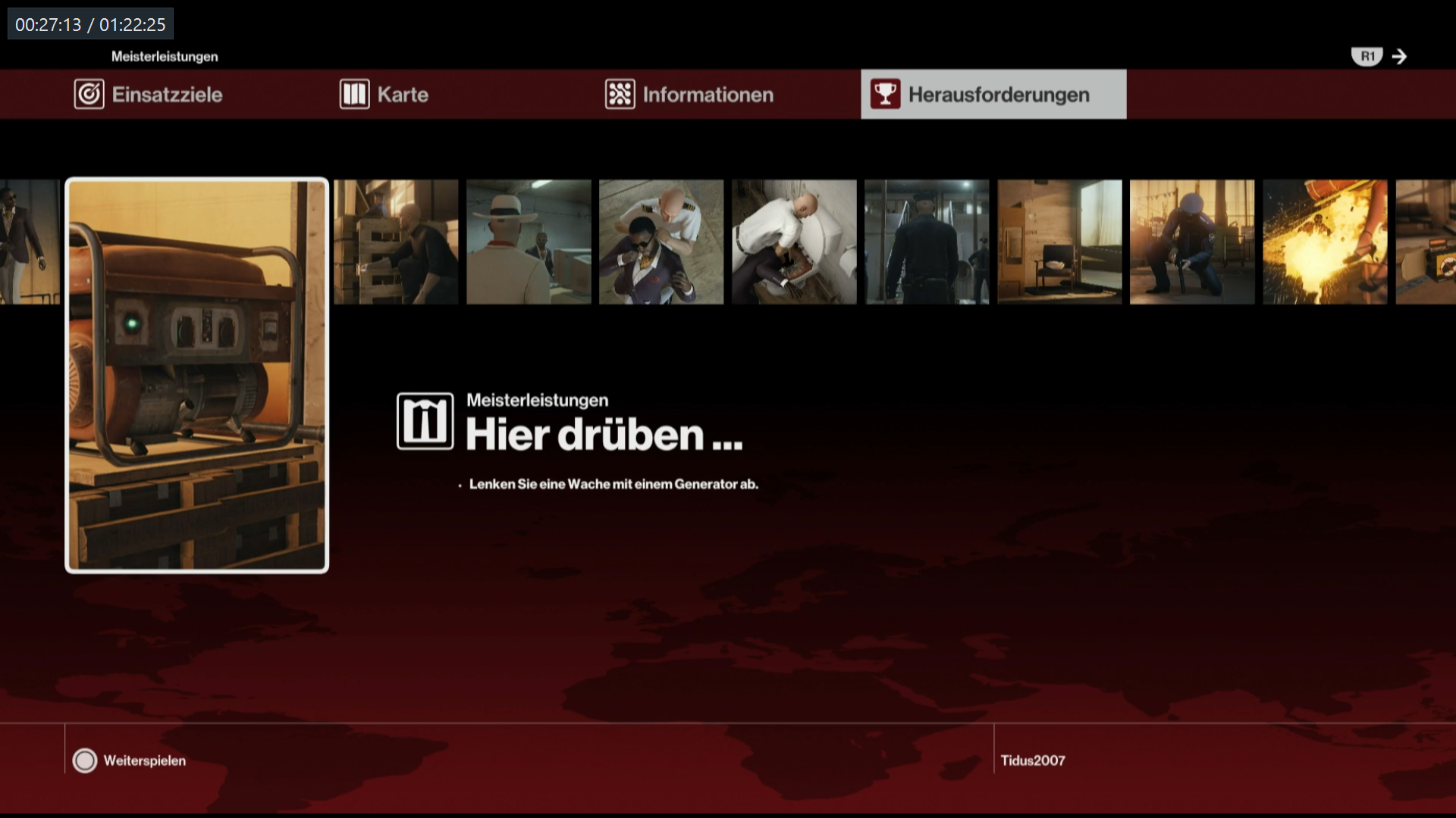 nochmals spielen, um voranzukommen, überspringen ist keine Option. Während unseres Tests hat sich dies als leicht hinderlich herausgestellt, da urplötzlich die Zielperson andere Dinge gemacht hat als im Training und so sämtliche Strategien über Board geworfen werden mussten. Nach einem Neustart hat sich das Ganze jedoch erledigt und wir konnten wie gewohnt schnüffeln und töten. Während dieses Abschnittes gibt uns das Spiel die Möglichkeit, die verschiedensten Möglichkeiten auszuprobieren. Mag man es lieber ruhiger, wählt man die Klavierseite, steht man auf ein gewaltiges Feuerwerk, nimmt man die Mine, ist man hinterhältig greift man eben zum Gift. Hierbei hat man wirklich verschiedene Möglichkeiten, um alles wieder und wieder zu testen, bis man für sich den idealen Weg der Tötung gefunden hat. Es mag verwerflich klingen, jedoch gehört das zum Spiel dazu, sämtliche Methoden auszuprobieren, wer weiß, was in den zukünftigen Missionen noch benötigt wird, ergo ist es besser, diese direkt zu erlernen als später zu scheitern. Sobald nun also jene Ritter Mission erneut abgelegt wurde, könnt ihr mit dem regulären Spiel fortfahren. Was ihr jedoch in dieser Mission erledigen müsst, verraten wir natürlich nicht, da wir natürlich wollen, dass ihr euch ebenfalls selbst mit diesem Titel beschäftigt und Spaß habt.