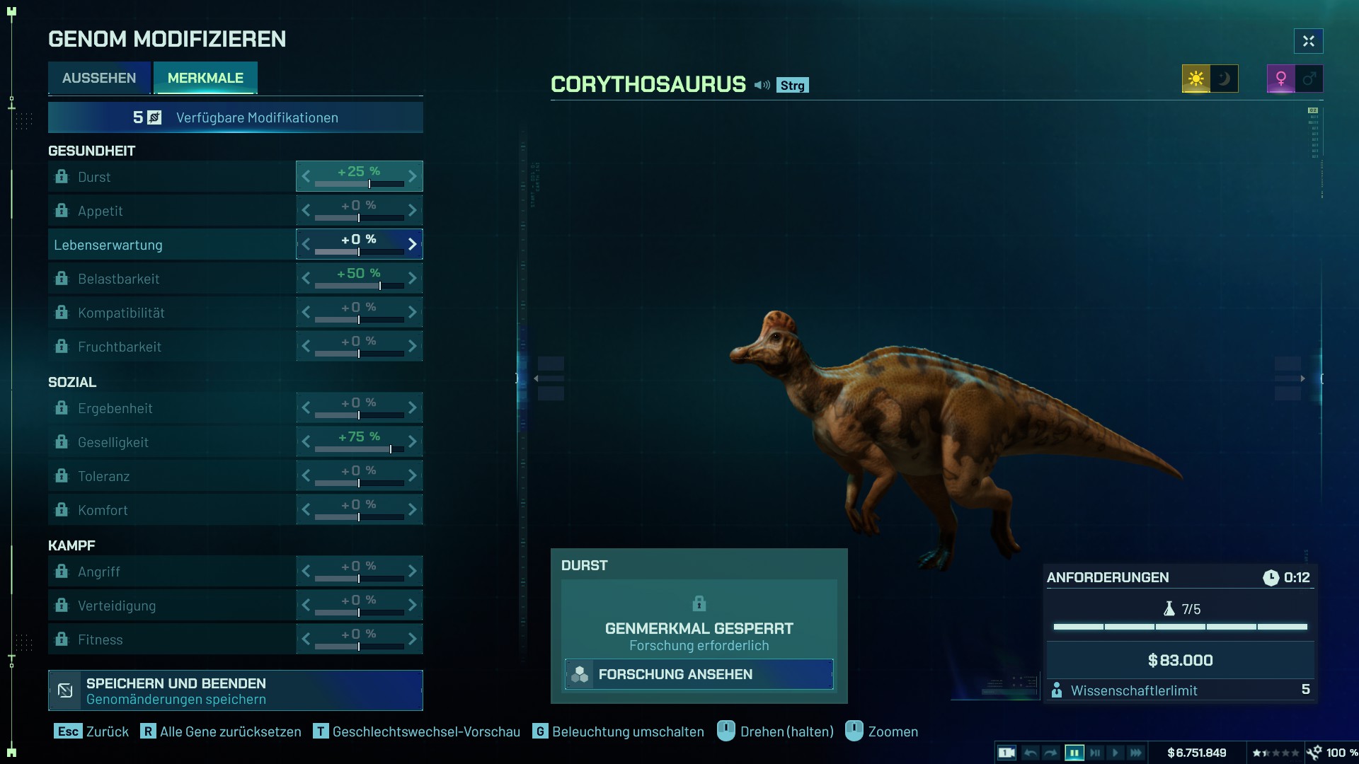 Nicht nur die Infrastruktur, sondern auch Dinosaurier Gene, können dem kreativen Kopf zum Opfer fallen. Von Farbe, Merkmalen bis hin zu Mischformen ist bei richtiger Forschung alles individualisierbar, sofern man den ethischen Konflikt der Hauptstory mit sich geklärt hat.