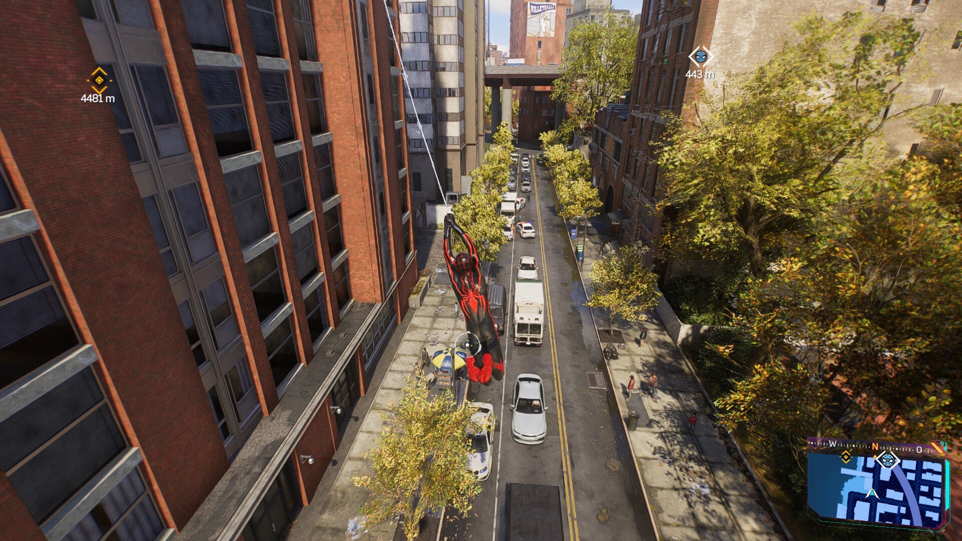 Spider-Man 2 knüpft spielerisch an die Stärken seiner Vorgänger an und erweitert diese durch neue Gadgets und Fähigkeiten auf sinnvolle Weise. Wie gewohnt schwingt sich Spider-Man auch im zweiten Teil mit seinen Netzen durch die Straßenschluchten von New York. Und das geht erneut flüssig und intuitiv von der Hand. Neu hinzugekommen ist ein Wingsuit, den beide Spidermen nutzen können, um große Distanzen effizient zu überwinden. Über die Stadt verteilt finden sich dafür Windkanäle und Lüftungsschächte, die für zusätzlichen Auftrieb und Geschwindigkeit sorgen.