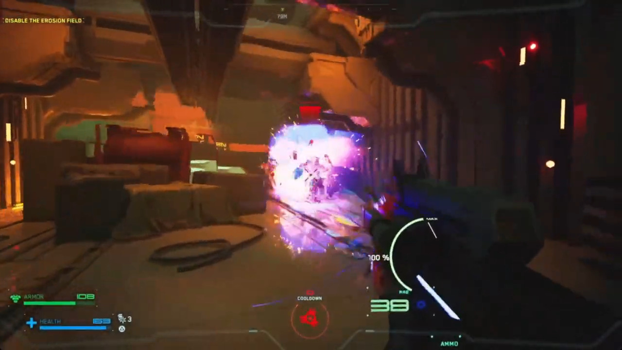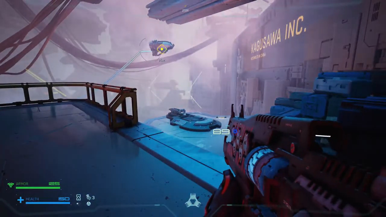 Andere Waffen haben begrenzte Munition und eignen sich eher für bestimmte Situationen. Die Gatling Gun ist dabei ein echtes Highlight: Für kurze Zeit kannst du alles in deinem Weg förmlich niedermähen, bevor der Timer abläuft. Das fühlt sich nicht nur mächtig, sondern auch belohnend an. Besonders gelungen ist das Balancing. Gegner sind keine Bullet-Sponges, sondern klar strukturiert. Jeder Feind hat Schwachstellen, und mit der richtigen Strategie kommst du weiter. Du kannst sie erschießen, sie mit Nahkampfangriffen erledigen oder ihren Kern herausreißen, letzteres ist nicht nur ein Instant-Kill, sondern kann sogar genutzt werden, um andere Gegnerpanzerungen zu durchbrechen. Das sorgt für Abwechslung und Taktik.