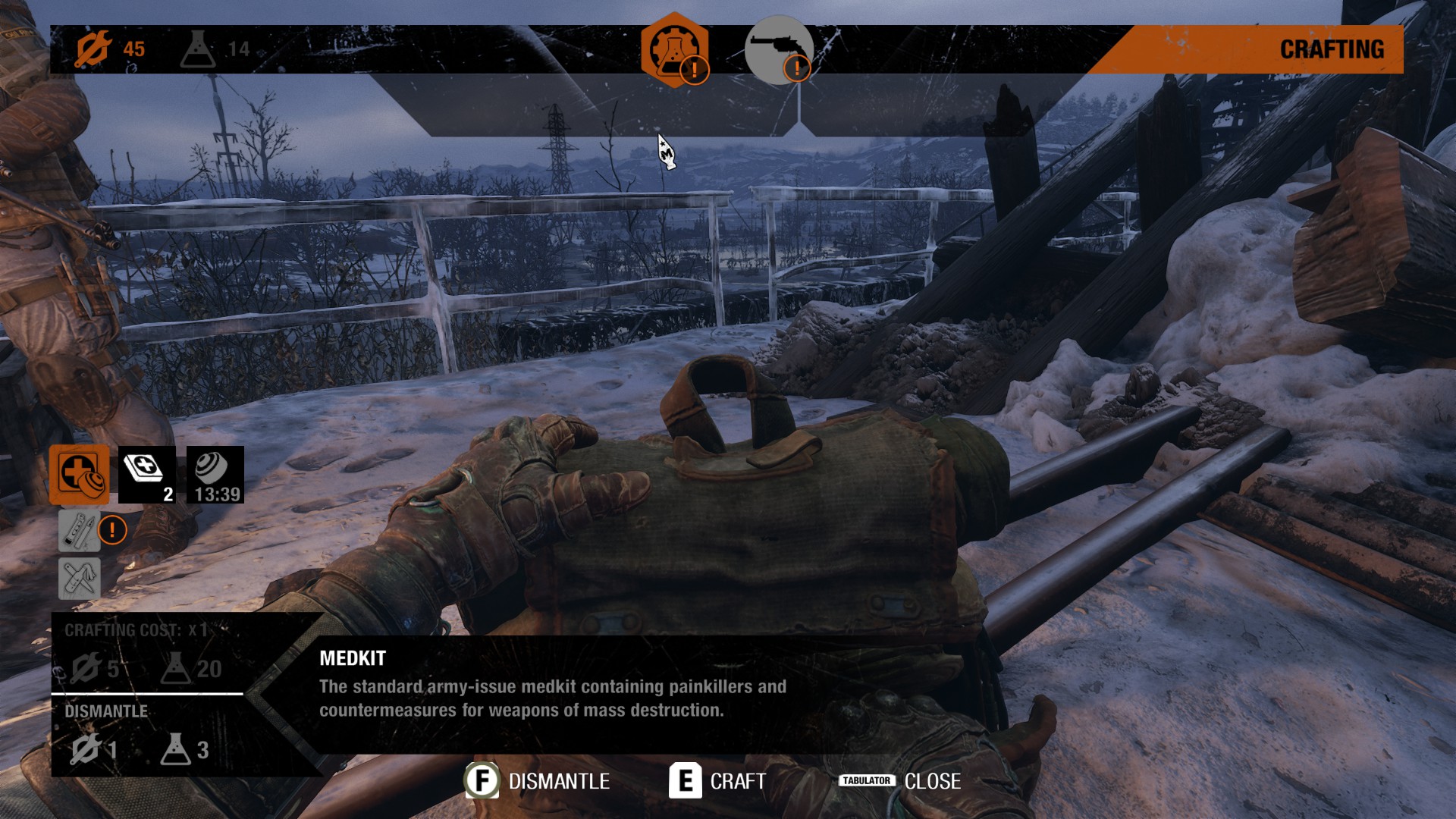 Aber nicht nur Open-World-Elemente haben es in das Spiel geschafft. Die vorhandenen Survival-Aspekte wurden um eine Crafting-Komponente erweitert. Wir finden nun Ressourcen in der Welt, die wir zu Herstellung von Medikits, Filter für die Gasmaske sowie Munition verwenden. Darüber hinaus können wir unsere Waffen umbauen und unterschiedliche Visiere und andere Modifikationen verwenden. In der Welt finden wir auch Upgrades für unsere Ausrüstung, sodass wir z.B. mehr Munition tragen können oder einen Kompass am Handgelenk haben.