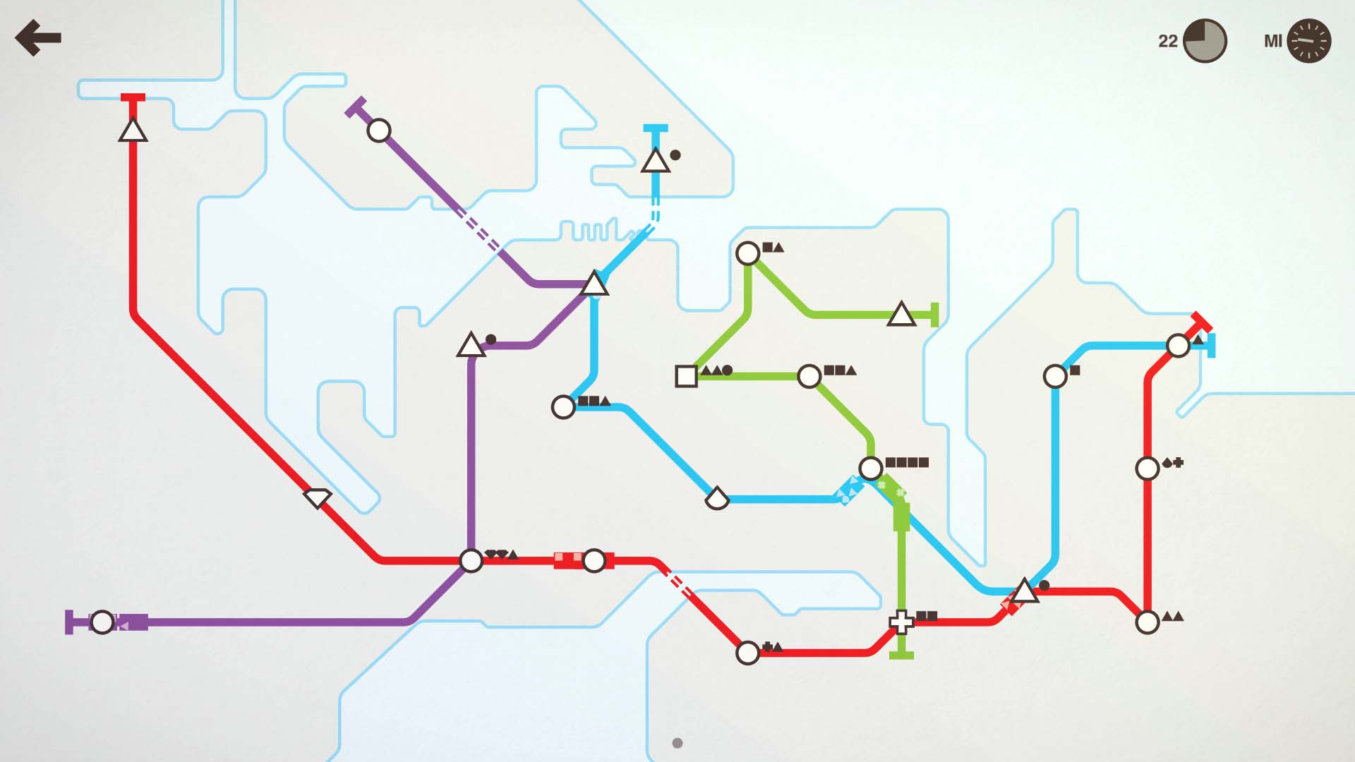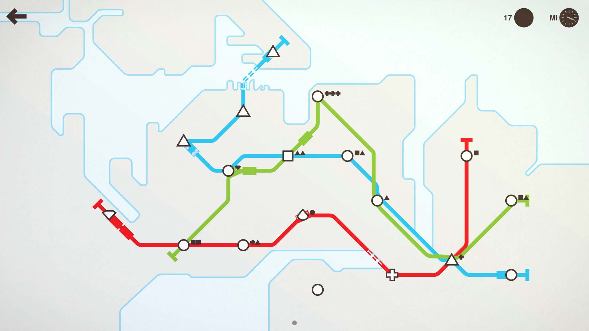 Grundsätzlich erfordert dieses Spiel keinerlei Wissen über Spielmechaniken, denn es ist wirklich simpel gehalten. Doch ohne Vorstellungskraft und Planungsvermögen scheitert man recht schnell. Ab einem bestimmten Zeitpunkt zieht die Geschwindigkeit an und das Passagieraufkommen steigt deutlich. Somit stellt man sich die Frage: Soll ich den Zug mit einem Waggon verlängern? Soll ich einen zweiten Zug auf die Strecke bringen? Oder, sollte ich eventuell eine neue Linie errichten, die vorhandene Strecken mitteinander verbindet, um Knotenpunkte zu schaffen?