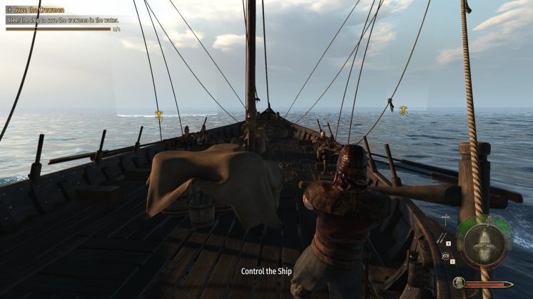 Abseits der See gibt es nun Schleichmissionen, bei denen Spieler etwa bei Nacht in Banditenlager eindringen können. In geduckter Haltung schleicht ihr durch hohes Gras und könnt ahnungslose Gegner leicht von hinten ausschalten. Doch Vorsicht: Wer sich zu schnell bewegt oder eine schwere Rüstung trägt, macht schneller auf sich aufmerksam.