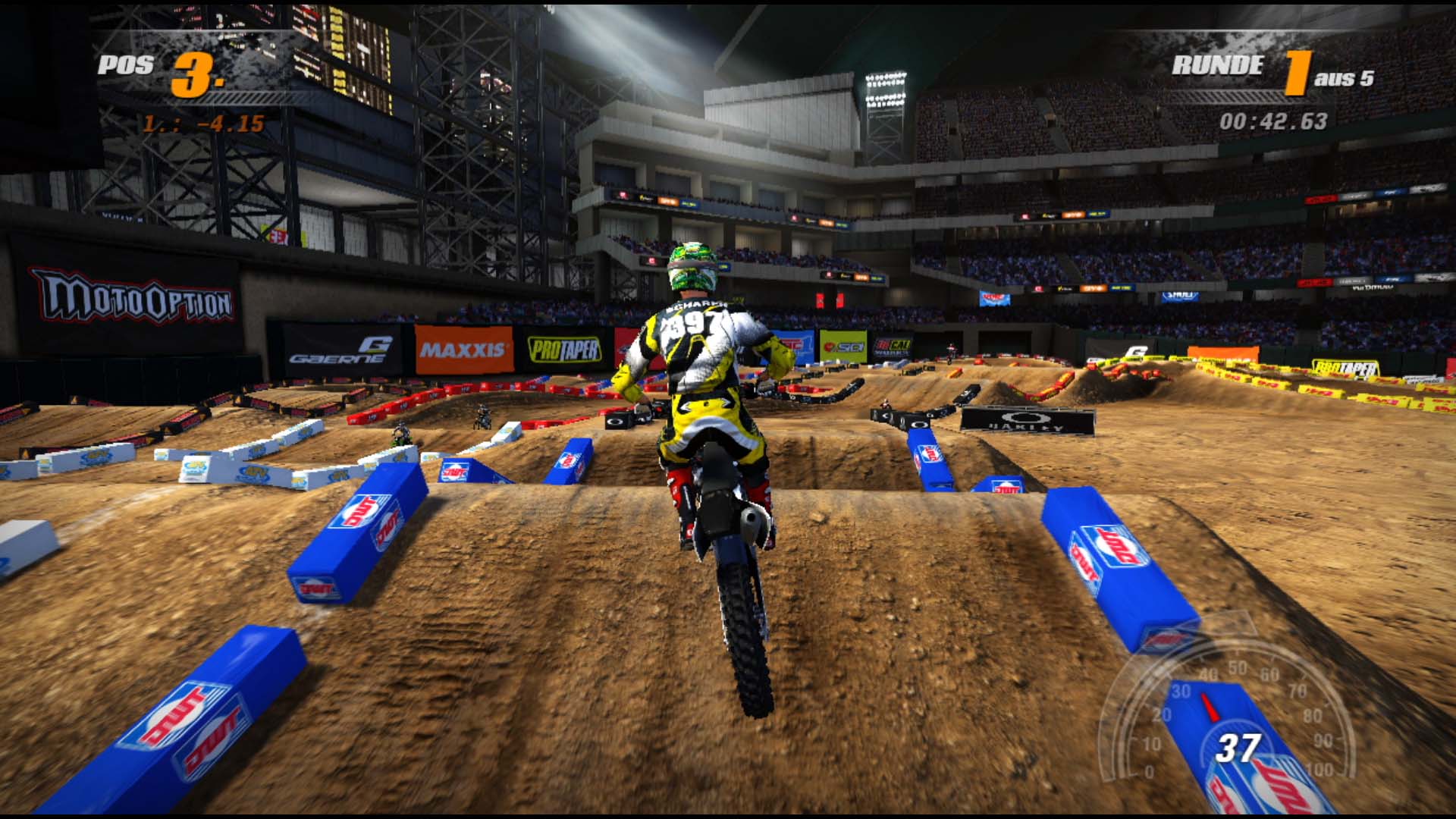 Hier kann eigentlich nur Positives berichtet werden. Weder Abstürze noch Hänger konnten festgestellt werden. Mittlerweile wissen auch Publisher, wie sie das Maximum aus den „Last-Gen“ Konsolen herausholen können. Man sieht eine Steigerung zum vorherigen Titel. Staubpartikel bzw. Dreckkörnchen sind deutlich zu erkennen, die Erde sieht aus wie Erde und man hat auch mit Effekten gespielt. Das gefällt uns recht gut. Am Charakterdesign und dessen Animationen sollte man aber nochmals arbeiten. Hier ist durchaus noch das ein oder andere Polygon drin, welches Stürze und andere Gesten noch realistischer herüberkommen lassen kann. Dennoch erfüllt der jetzige Stand die Anforderungen, denn primär geht es bei einem Racing Spiel um Rennen mit Fahrzeugen und nicht um die Dame, die in jeder Runde ein neues Nummernschild in die Höhe hält.Der Sound dagegen klingt authentisch. Motoren klingen so, wie sie klingen sollten. Es gibt sogar Unterschiede je nach Areal. Das einzig nervige daran sind manchmal die Geräusche der Fahrer, wenn sie aufkommen oder stürzen. Diese könnten im nächsten Ableger etwas dezenter sein.