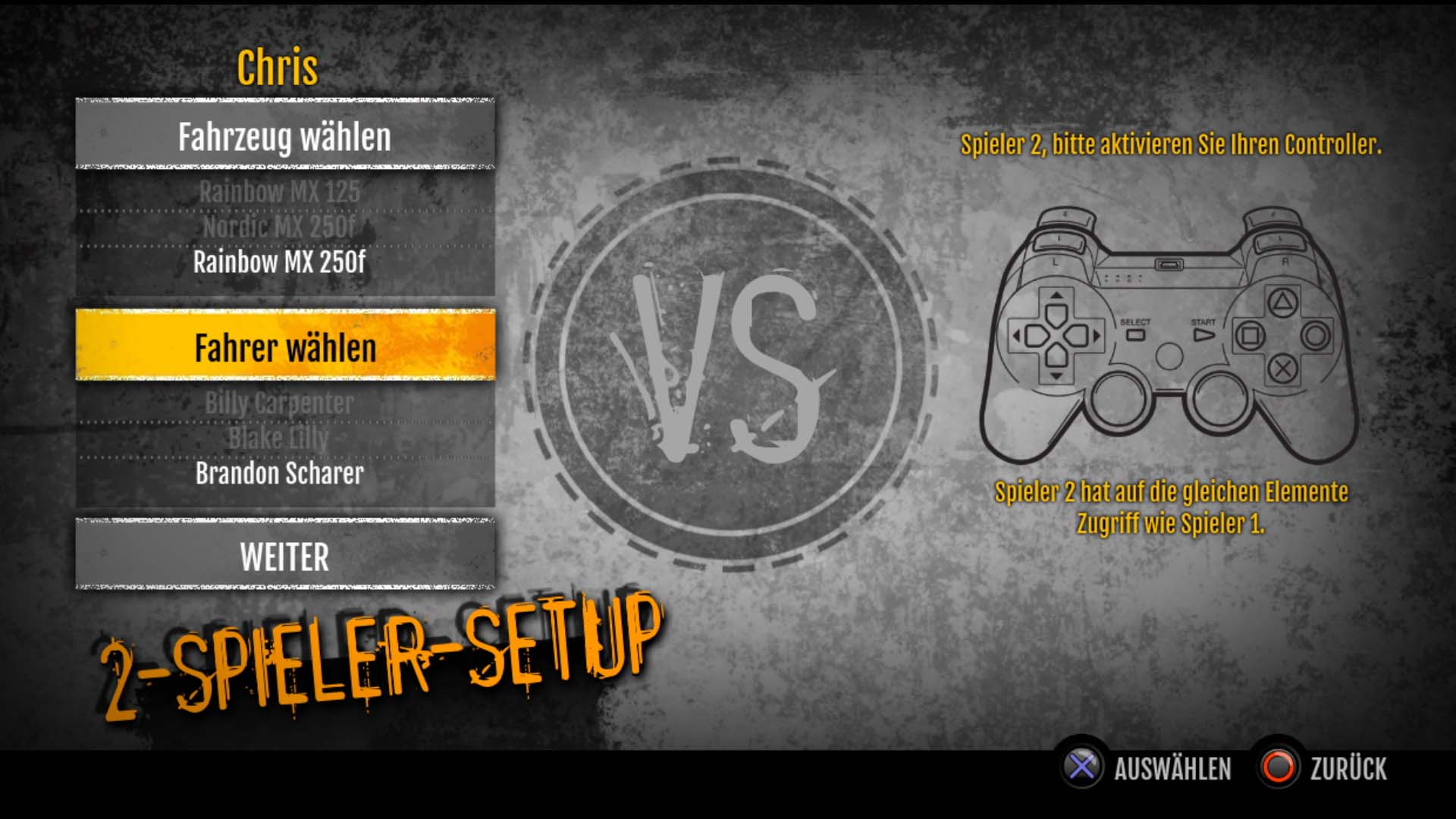 Bei der Story kann man nicht großartig meckern aber auch nicht loben – denn es gibt keine. Das einzige Ziel ist es, an die Spitze zu gelangen, egal wie. Deshalb sollten Spieler auch nicht vergebens nach ihr suchen. Bei den Modi (Plural v. Modus), sieht es da schon ganz anders aus. Hier wird dem Spieler wirklich einiges geboten und dank den verschiedenen Fahrern und Fahrzeugen, gibt es quasi eine sehr große Palette an Möglichkeiten und Herausforderungen. Alle unterscheiden sich etwas und es liegt einzig und alleine am Spieler, diese zu entdecken und für sich zu nutzen. Dank der 17 Supercross Strecken, dem Karriere Modus mit 5 Veranstaltungen und den 40 Fahrern gibt es einiges zu entdecken. Bei den Strecken habt ihr die Wahl zwischen MX und ATV Strecken. Während eurer Karriere als Racer solltet ihr folgende Events absolvieren: 250 East, 250 West, 450 MX, 450 ATV, 450 MX vs. ATV. Zudem zählen auch die Sekunden in der Luft. Wer kann mehr Stunts in der Luft vollführen? Wer landet wieder auf seinen Rädern? Springst du oder bist du eher vorsichtig? Aber auch der Mehrspieler Modus in Form von Koop oder online hat es in sich. Fährt man eher gegen Wildfremde oder vielleicht doch gegen den besten Freund? Fährt man Online gegeneinander oder an derselben Konsole, direkt nebeneinander via Splitscreen?