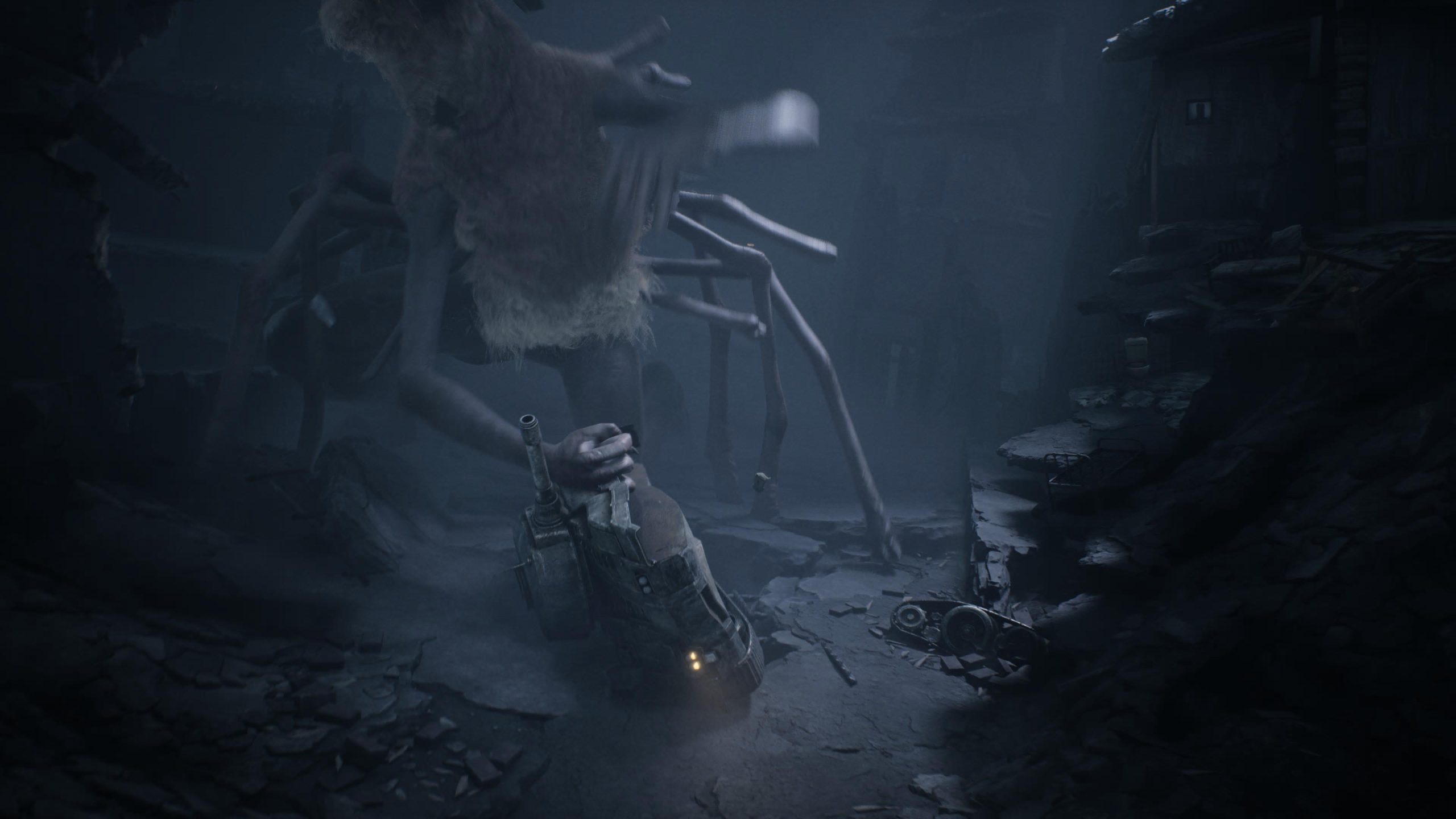 Die Kreaturenpalette ist dabei nicht nur variantenreich, sondern auch thematisch herrlich falsch: zu groß geratene Möwen als Alptraum aus Küste und Krallen; „Hautanzüge“, die nicht mehr nach „falscher Mensch“ aussehen könnten; Spinnenwesen, die weniger „Monster“ sind als laufende Panikattacken; und dann diese Kriegssegmente: zerfetzte Kulissen, martialische Gerätschaften, ein Tonfall, der plötzlich noch ein paar Schichten Ernsthaftigkeit drauflegt. Sogar ein Panzer wird zum Spielzeug der Angst.