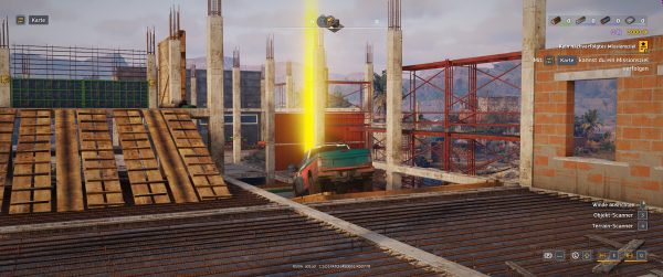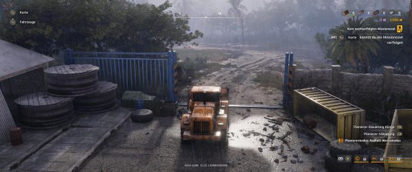 Unser Pickup-Truck verfügt über die allseits beliebte Seilwinde, die uns durchaus aus der Klemme helfen kann. Aber auch für die ein oder andere Aufgabe kann sie eine große Hilfe darstellen. Sollten wir wider Erwarten dennoch stecken bleiben, können wir uns an den Startpunkt der Karte oder entsprechende Zwischenlager teleportieren.