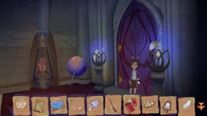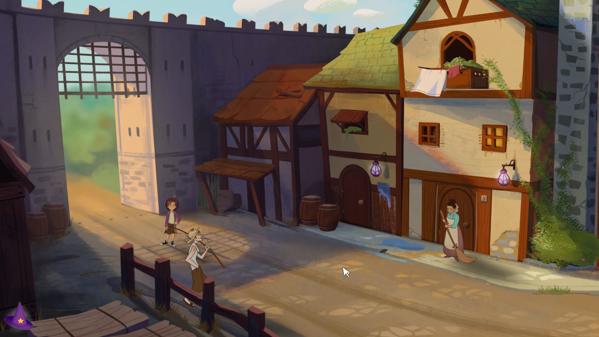 Der junge Zauberer kann mit verschiedenen Personen und Gegenständen in der Welt interagieren. Mit der linken Maustaste lässt sich eine Aktion ausführen, wie etwa ansprechen, während ihr mit der rechten Maustaste den Gegenstand oder die Person untersuchen könnt und dazu Simons Gedanken hören könnt. Dieser durchbricht dann gerne des Öfteren die vierte Wand und spricht euch direkt an. Außerdem könnt ihr verschiedene Gegenstände in der Welt auflesen, die sich entweder miteinander kombinieren lassen oder an Orten in der Welt benutzt werden können. Die Items trägt Simon stets in seinem Zauberhut bei sich.