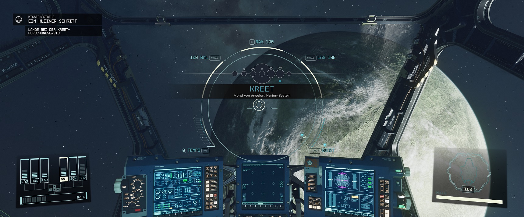 Darf man dann endlich in den Weltraum abheben, folgen die nächsten Momente der Ernüchterung und sogar Frustration: Ernüchterung, weil man mit seinem Raumschiff nicht frei navigieren darf, sondern nur mittels Animationssequenz von Punkt A nach Punkt B fliegt. Frustration, weil das an dieser Stelle eingefügte Tutorial so schlecht gestaltet ist, dass es mehr Verwirrung stiftet, als dass es den Einstieg ins Spiel unterstützt.